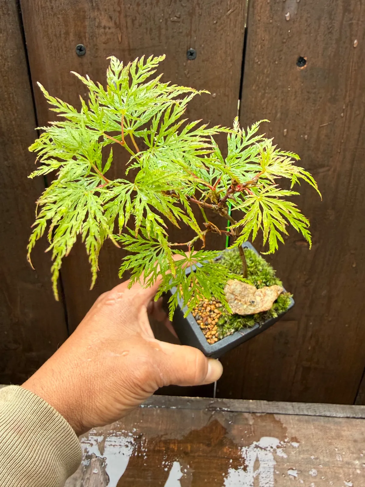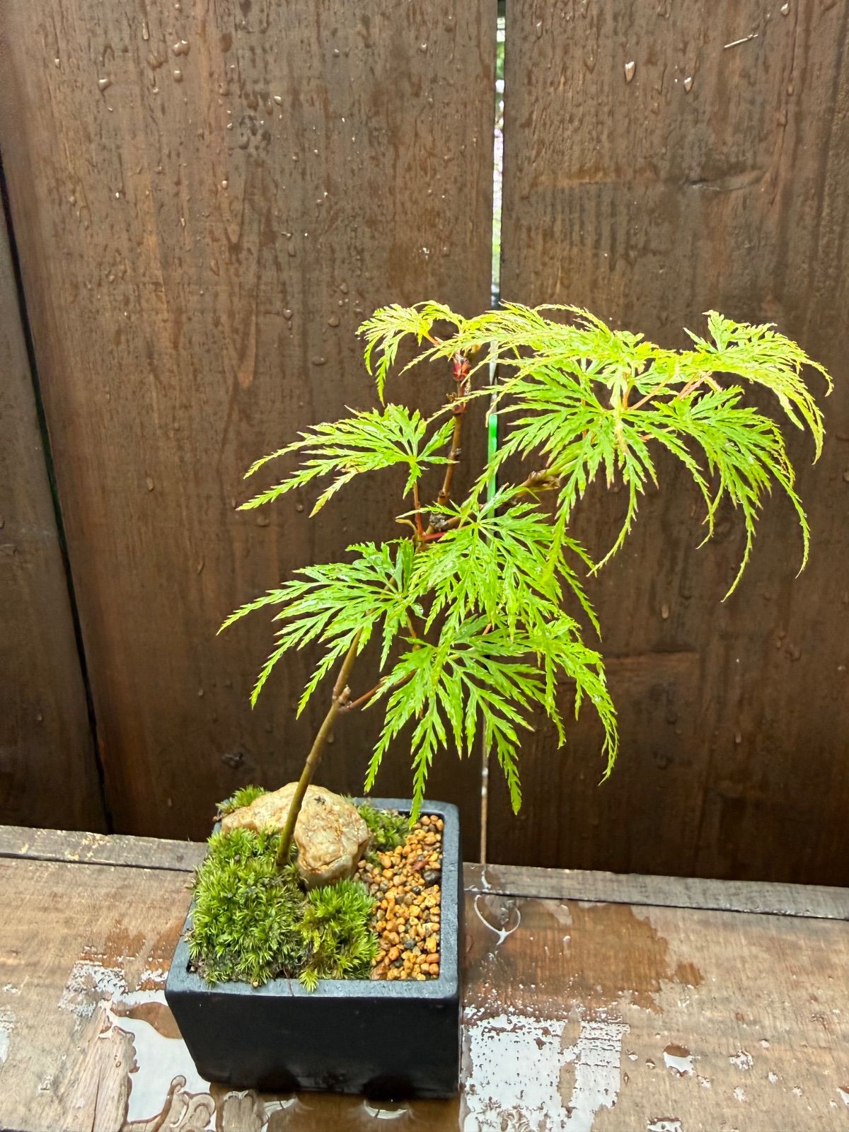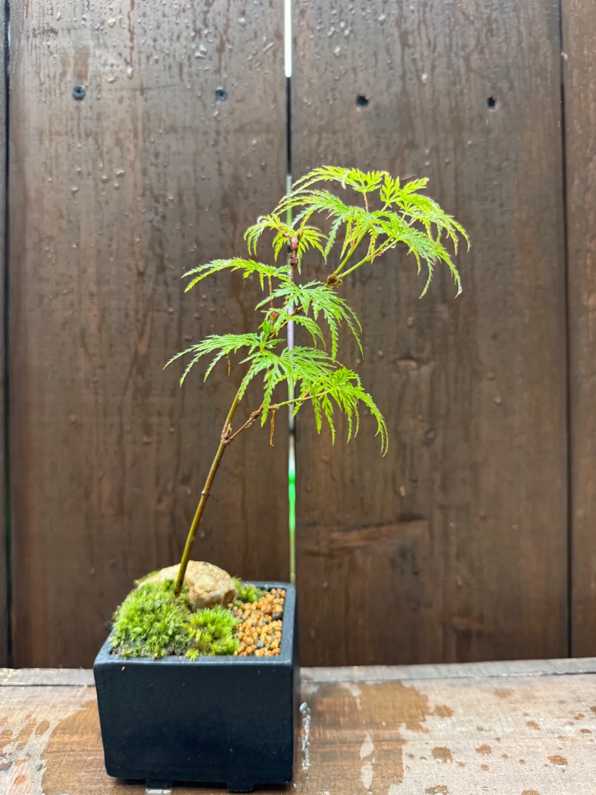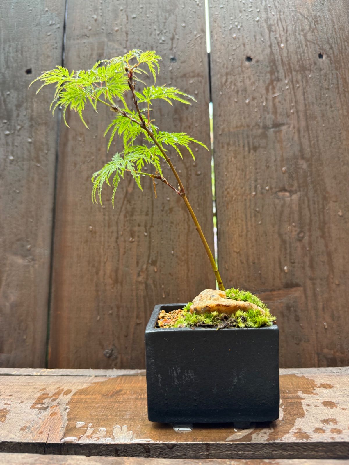 もみじ エメラルドレース かみ山陶器さん長角黒釉 ミニ盆栽 専用ボックス即日発送