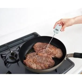 温度がひと目でわかるデジタル温度計はパンの発酵温度や加熱調理食材の中心温度の確認に最適。キッチンを楽しくするポップなカラー展開なので、食材ごとに色分けをして、食中毒対策をするのもおすすめです。