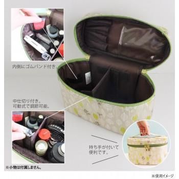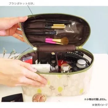 使い勝手のよいバニティタイプのメイクポーチです。スリムタイプなのに、収納力抜群。化粧水などのスキンケアアイテムやお気に入りのメイクアイテムをたっぷり収納できます。便利な仕切り板はマジックテープ仕様。中身に合わせて、スペースを調整できます。アイテムを固定できるゴムバンドやブラシポケットも付いた機能的なデザインです。