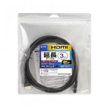 ■ラッピング(包装)対応不可です。 芯線にツイストペアケーブルとドレンワイヤの1組ずつに、密閉型のアルミシールド処理を施し、外部ノイズから大切なデータを守ります。金メッキプラグを採用しています。接触抵抗を低くし、錆などによる経年変化を抑え画質・音質劣化を防止します。 HDMIケーブルの長さを少し伸ばしたい時や、差し込みにくいHDMI端子(メス)を手元で作業できるようにしたい時、また、HDMI機器の端子を保護したい時などに便利なHDMI延長ケーブルです 最大8K/60Hz、4K/120Hz解像度に対応しています。 ※8K/60Hzでは同時にウルトラハイスピードケーブルを、4K/60HzではプレミアムHDMIケーブル(又はウルトラハイスピードケーブル)を使用してください。また、ケーブルの長さが全体で5m以下になるような長さでご使用ください。 ※本製品は信号増幅のICなどを使用していないパッシブタイプのケーブルです。使用する機器、合わせて使用するHDMIケーブルの仕様によっては信号の減衰によって正常に使えない場合もあります。 サイズケーブル長:3m(コネクタの長さも含む) 個装サイズ:26.5×23.5×2.2cm 重量約149g 個装重量:162g 素材・材質PVC 仕様カラー:ブラック コネクタ形状:HDMIプラグ、HDMIジャック(HDMIスタンダード タイプAコネクタ オス、タイプAコネクタ メス) 規格:ULTRA HIGH SPEED HDMIケーブル準拠。※認証品ではありません 対応解像度:最大8K/60Hz、4K/120Hz ケーブル外径:6.0mm HDCP:HDCP2.2/2.3/1.4対応(パッシブケーブルなので、HDCPには影響はありません) 伝送帯域:最大48Gbps(理論値) 生産国中国 fk094igrjs おすすめ 商品番号:ab-1817855 ※代引き不可 同梱不可※北海道、沖縄、離島送料は別途お見積り。※手配完了後は、ご注文キャンセルを承る事が出来ません。何かございましたら事前にお問い合わせ下さい。