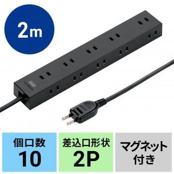 サンワサプライ 電源タップ 2P 10個口 強力ネオジムマグネット シャッター付 2m ブラック TAP-2210-2BK