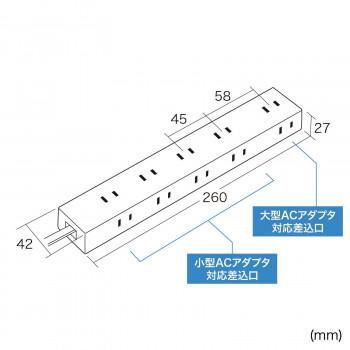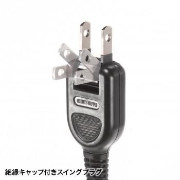 差込口は45mmピッチで小型ACアダプタが10個接続可能で、タブレットの充電器接続に便利です。1箇所はピッチが58mmと広く、大型のACアダプタが設置可能です。マグネット付きなので、スチールキャビネット・デスクに取り付け可能。ホコリ防止シャッター付きで、ホコリの侵入を防止します。トラッキング対策適用範囲拡大対応の絶縁キャップ付きスイングプラグを採用しています。
