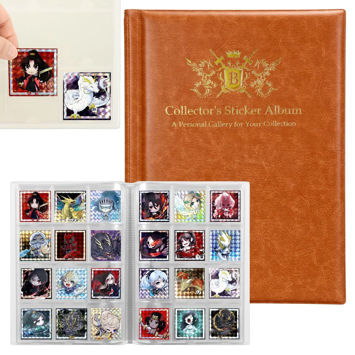 ビックリマンチョコ・シールウエハース等ファイル 手帳型 大容量 最大480枚 保管 コレクション 鑑賞用 傷防止 レザー調 スリーブ可 48mm/52mm対応 (ブラウン) [ブラウン]