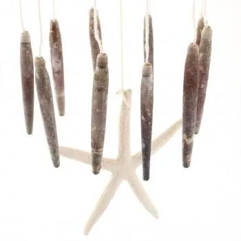 珍しいウニの棘を使ったチャイム。スターフィッシュとともに揺れるマリンテイストなアイテムです。お部屋でも海を感じられます。