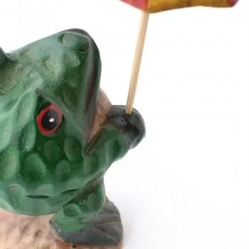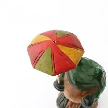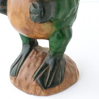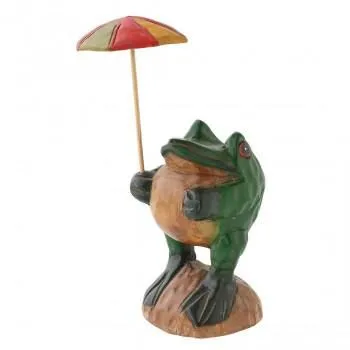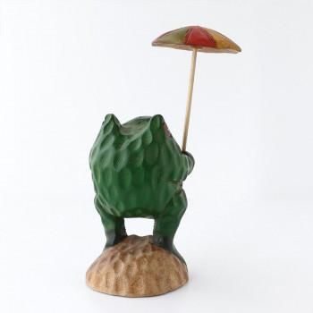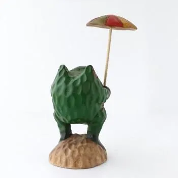 ぽてっとしたカエルをデスクの上に置くと、かわいい瞳が見上げてきます。傘の長さなど多少差があります。北タイ地方のチェンマイで古くから伝わる伝統工芸のカービング(木彫り)。現在ではその技術を受け継ぐ職人さんが大変少なくなり、希少なものとなっています。個体差がでるのも味わいがあります。