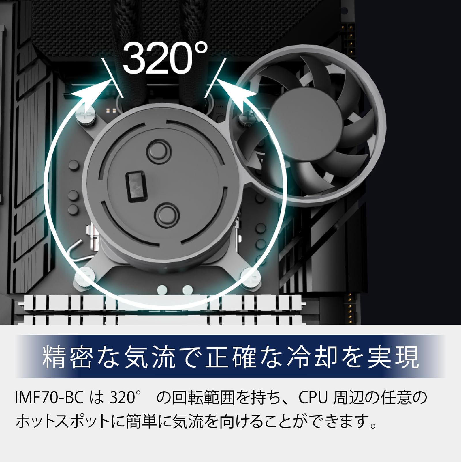 CPU ソケット周辺のホットスポットを狙う 320° の可動範囲