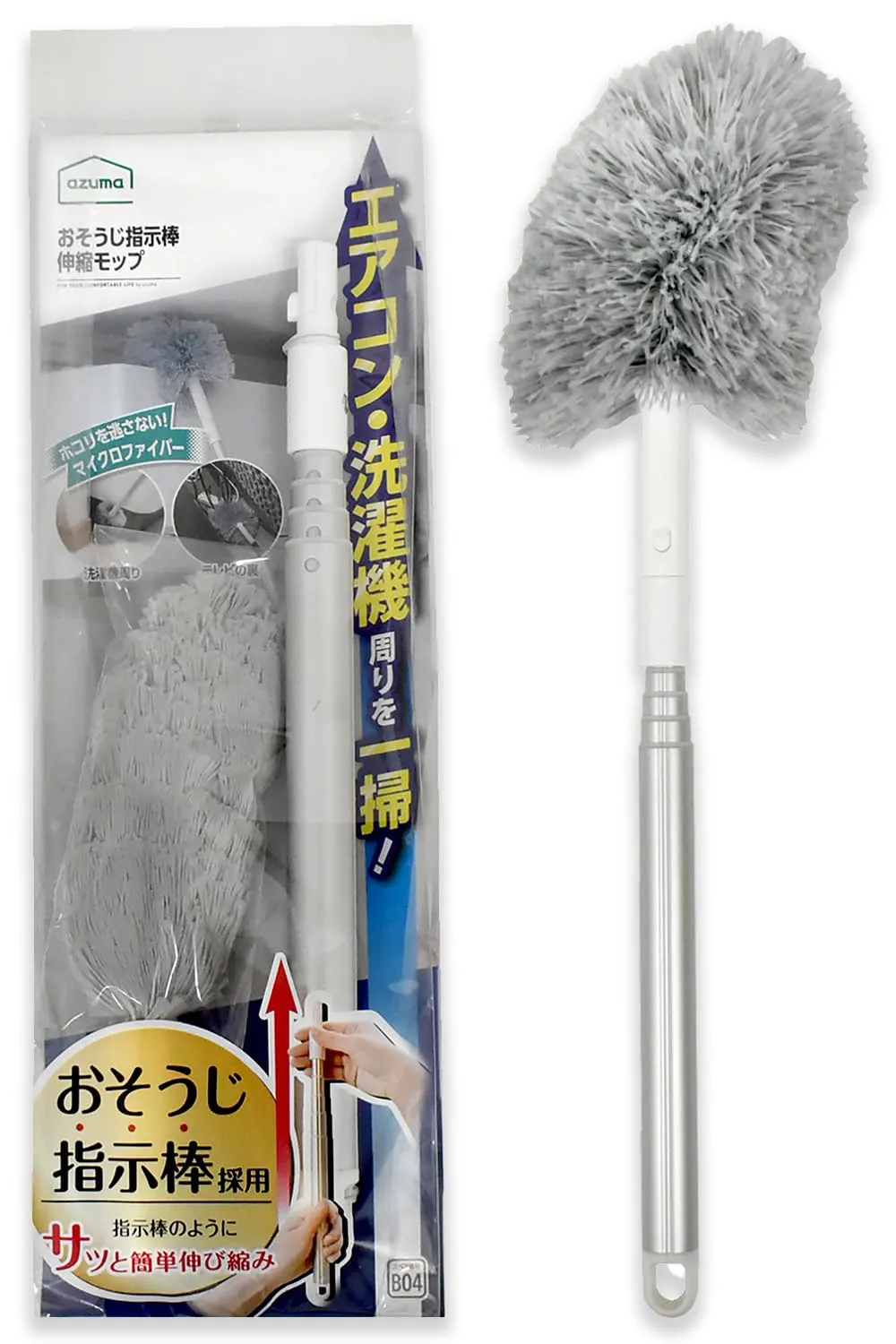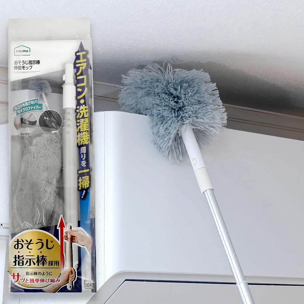 新品 アズマ 収納にも便利なマイクロファイバーモップ おそうじ指示棒伸縮モップ 全長47~100cm 重さ104gホコリ 髪の毛 エアコン カーテンレール 手の届きにくい場所に FX686