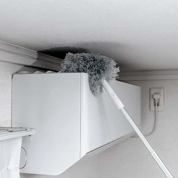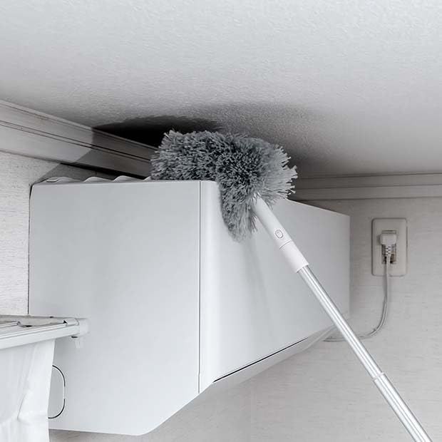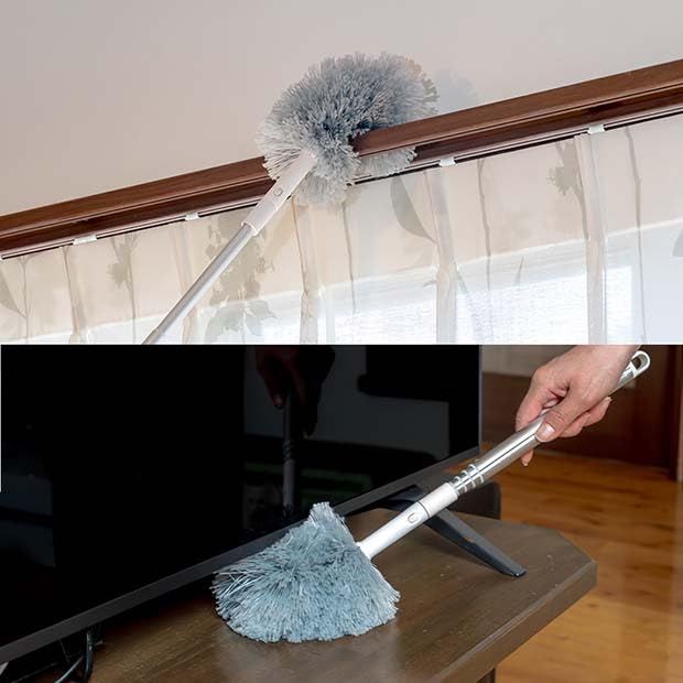 【高いところから手元のお掃除にも】エアコンの上やカーテンレール、テレビの裏、洗濯機周りなどの手の届きにくい場所のお掃除に。 {使用時の全長:約47100cm)