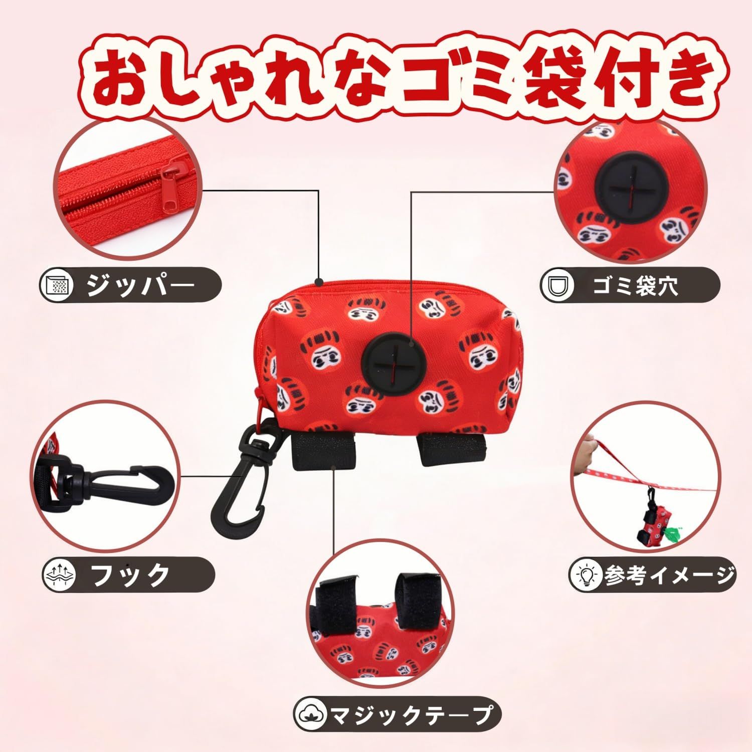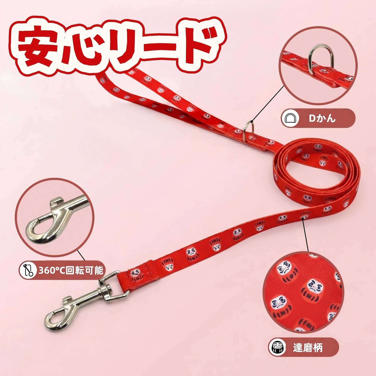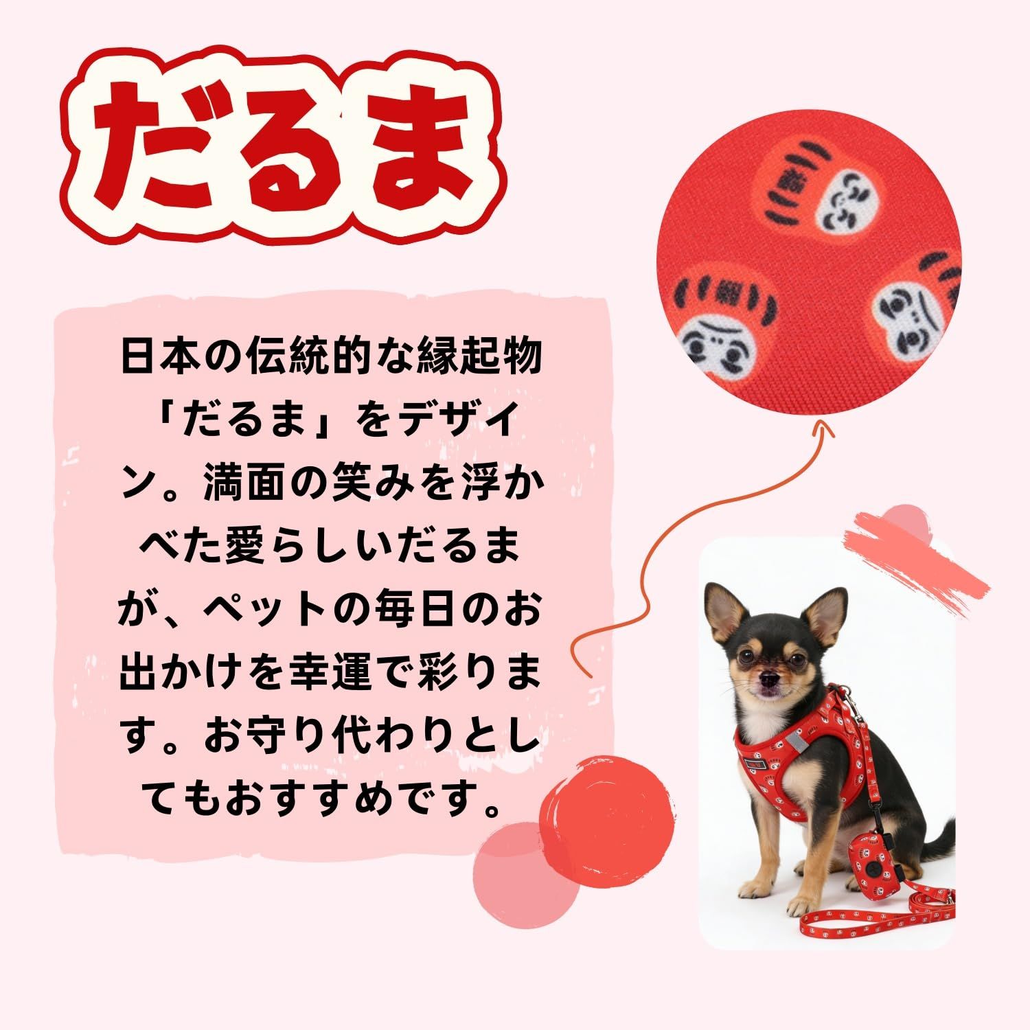 お散歩が「勝負運アップ」の開運タイムに!従来のペット用品にはない、和モダンな達磨柄が愛犬のおしゃれを引き立てます。日本の伝統的なクラフト感を演出します。