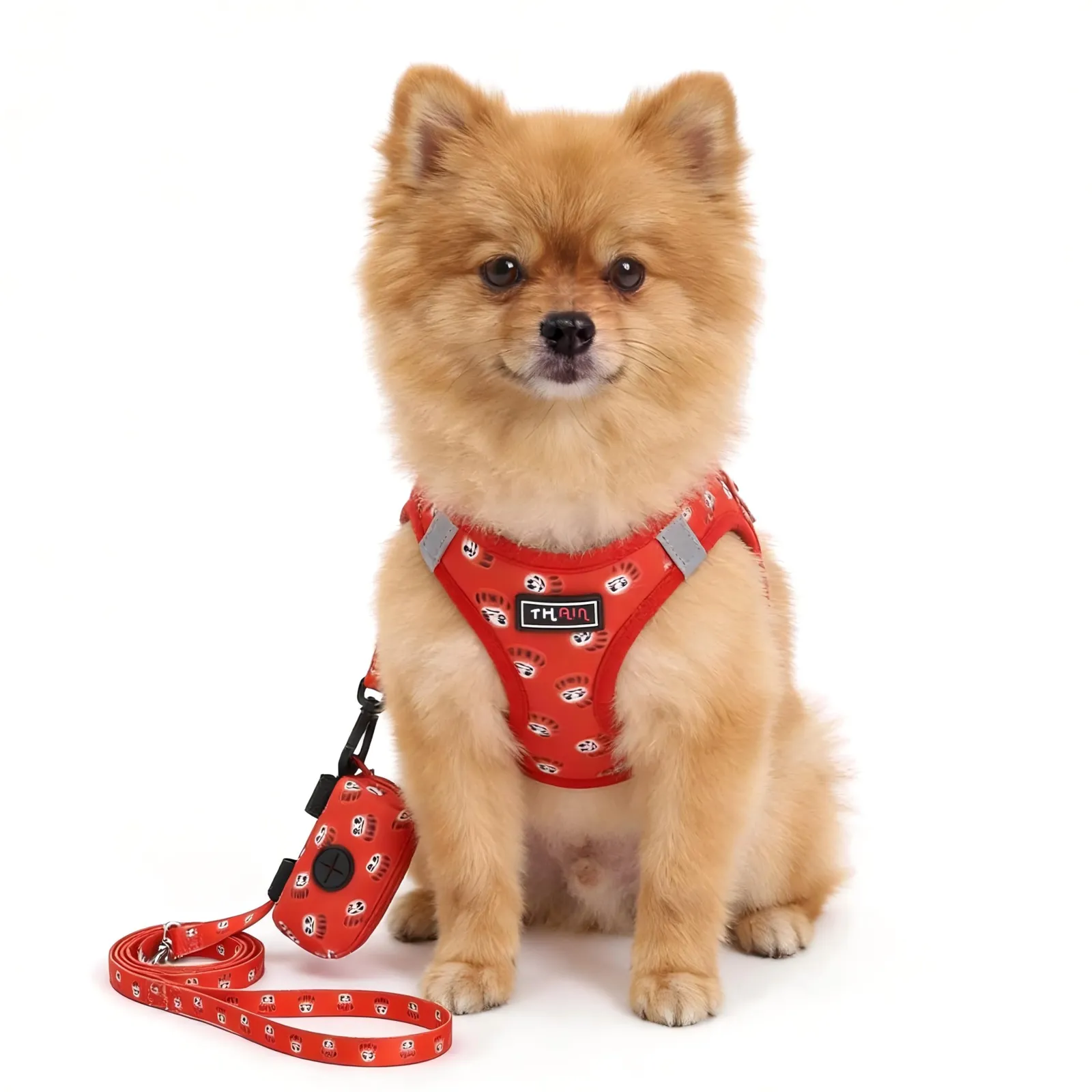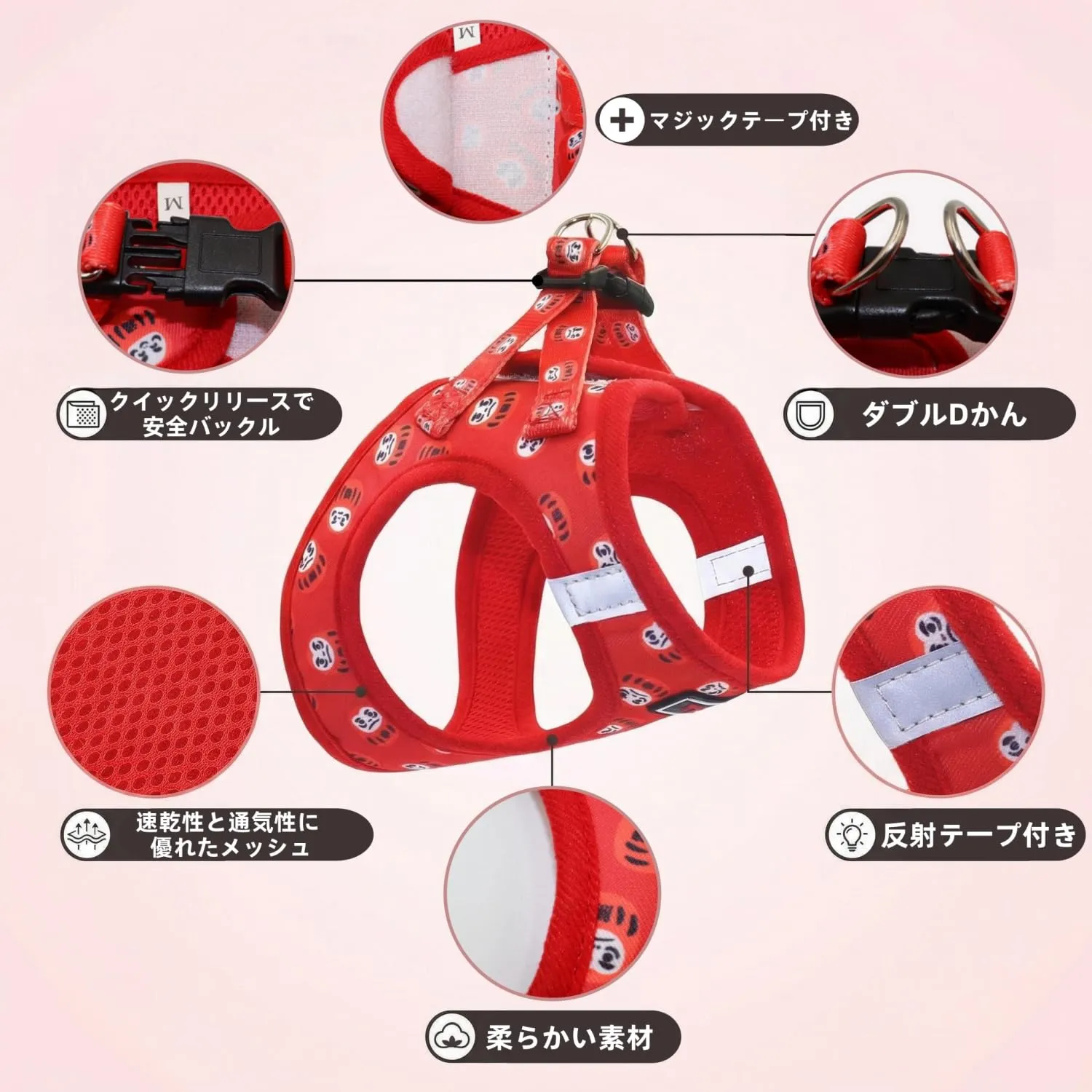新品 THAIN 犬用ハーネスリードセット 御洒落 通気性いいメッシュ素材 反射テープ付き 可愛い達磨柄 猫 ハーネス リード 胴輪 超小型犬 小型犬に向け 調節可能 ペット用品 (M)