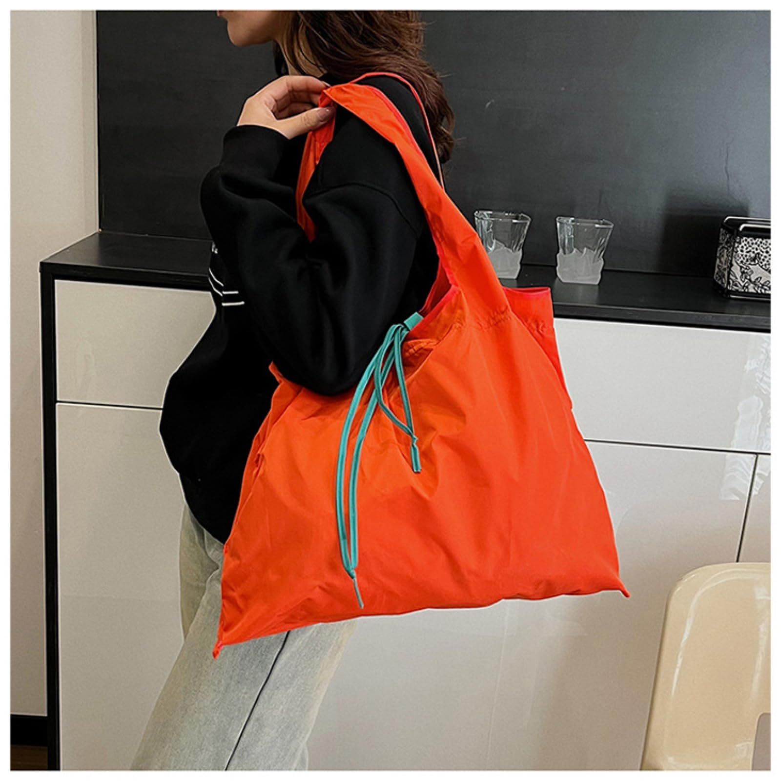 新着商品 [Senteria] エコバッグ 折りたたみ 巾着 大容量 おしゃれ A4対応 丈夫 撥水 軽量 男女兼用 買い物袋 折りたたみ式 大きめ 繰り返し使える 大型 コンビニ トート ショッピング 耐久性 コンパクト バイカラー オレンジ