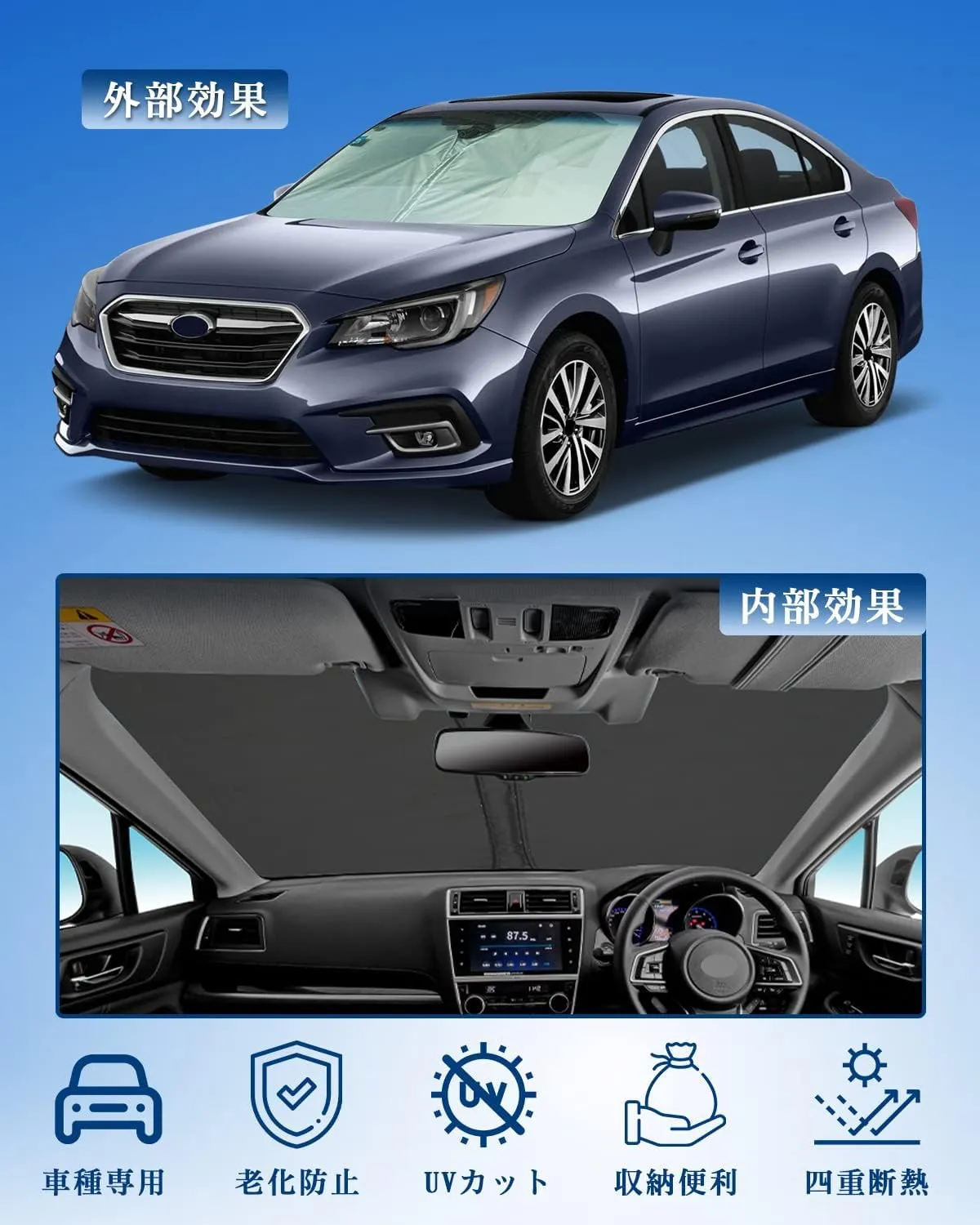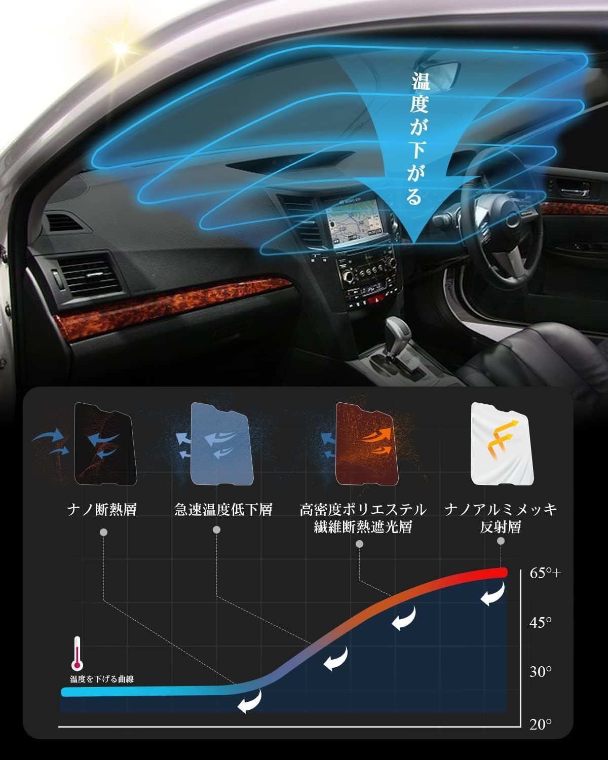 このレヴォーグ 内装 アクセサリーは猛暑の駐車時に最適。4層構造が99%の太陽熱を反射し、車内の急激な温度上昇を防止。高い遮光性でプライバシーも保護し、繰り返し使用しても破損やホコリ脱落の心配がありません。愛車を快適に保つ頼れるアイテムです。