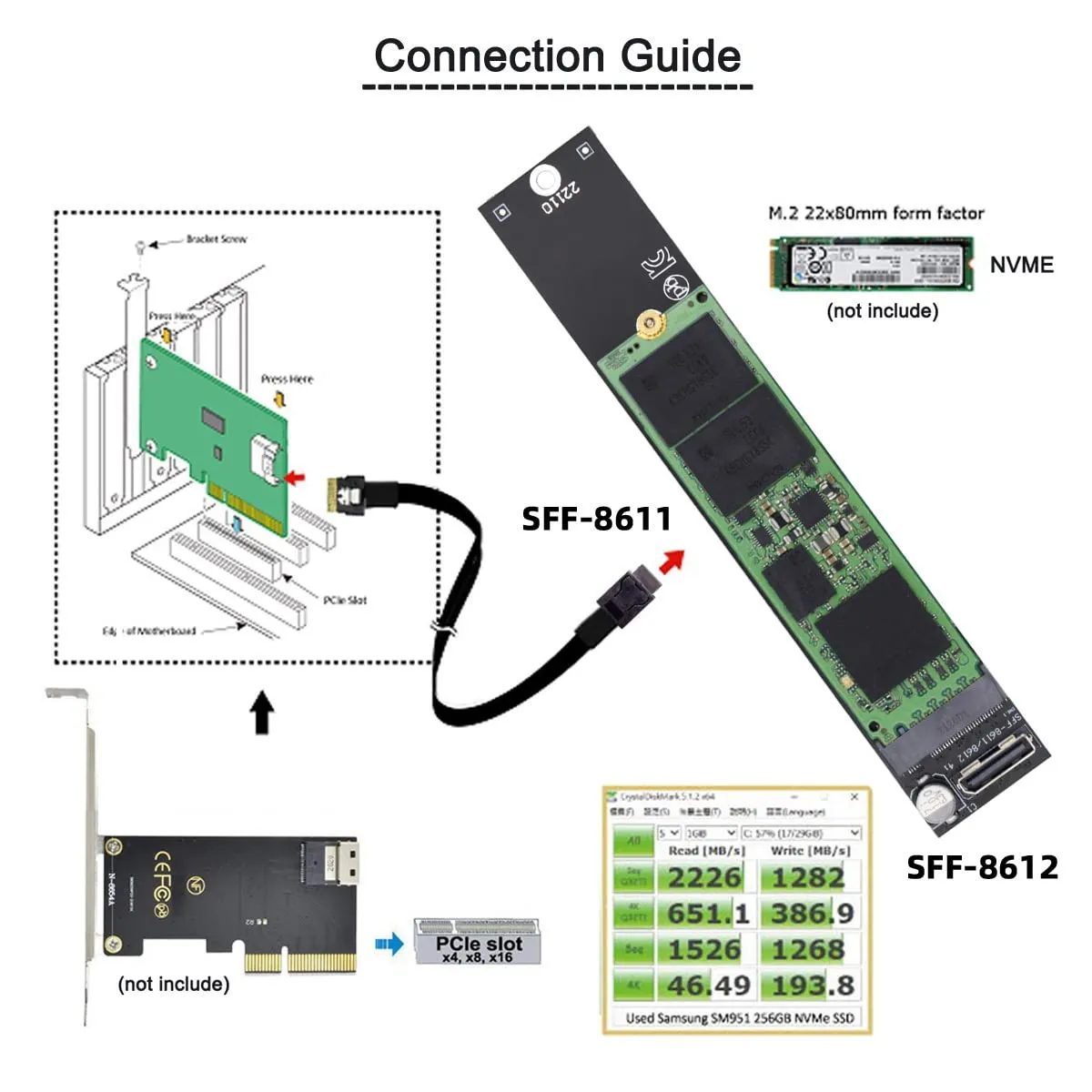 Oculink SFF-8612 SFF-8611 auf M.2 Kit NGFF M-Key auf NVME PCIe SSD 2280 22110mm Adapter fur Mainboard