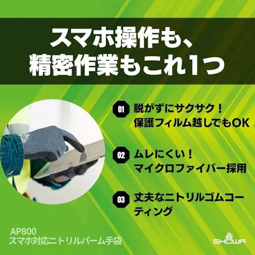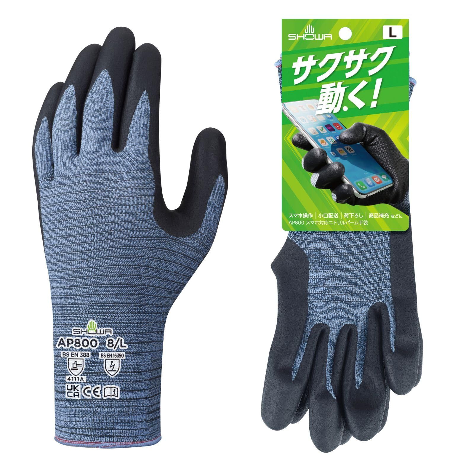 新着商品 [ショーワグローブ] ニトリル背抜き手袋 スマホ対応ニトリルパーム手袋 AP800 Lサイズ グレー 1双 タッチパネル対応