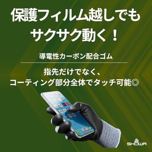 【スマホ・タッチパネル対応】手袋を着用したままでもスマートフォンやタブレットをサクサク快適に操作できます。(繊維部分と手のひらのコーティング部分ともに導電性があるため)