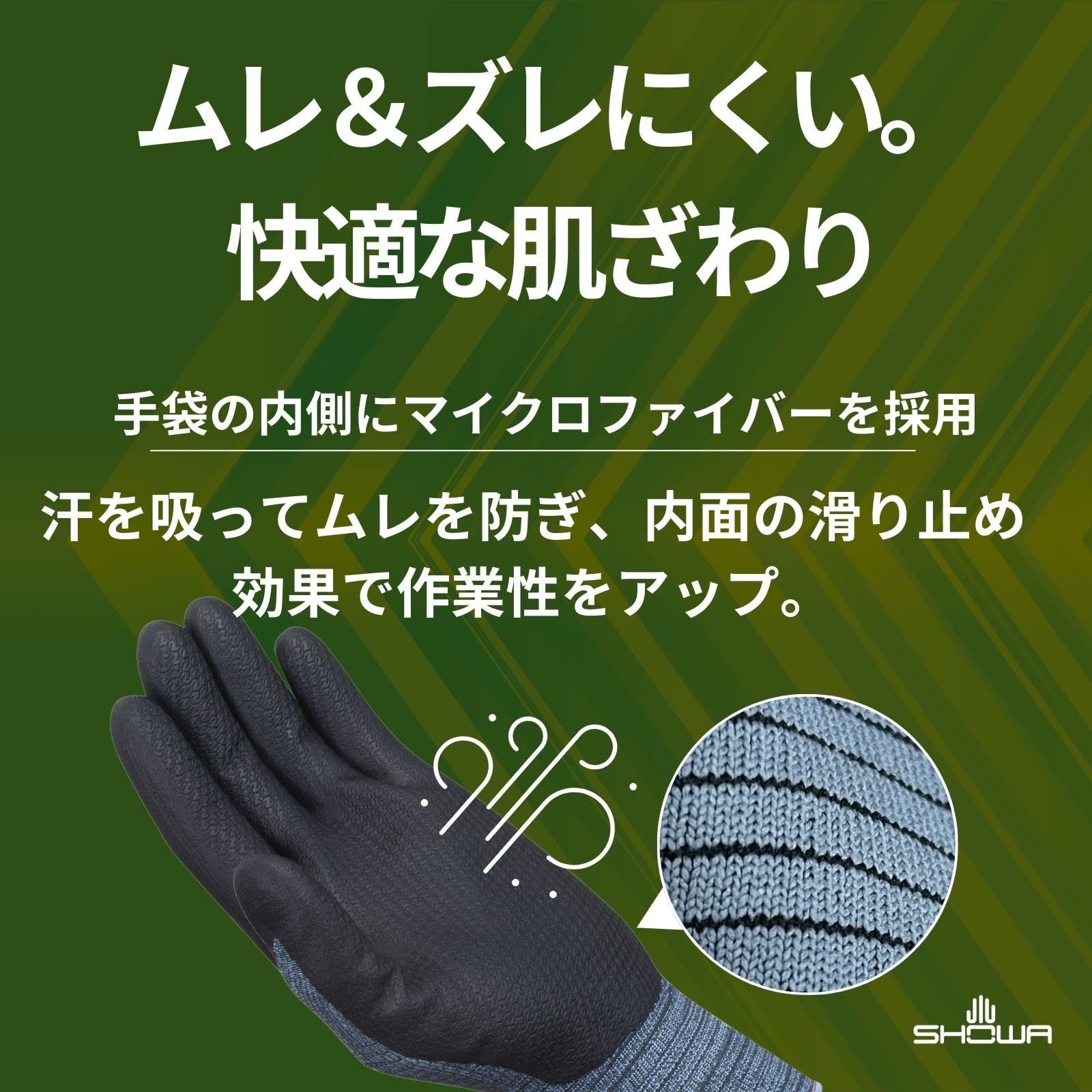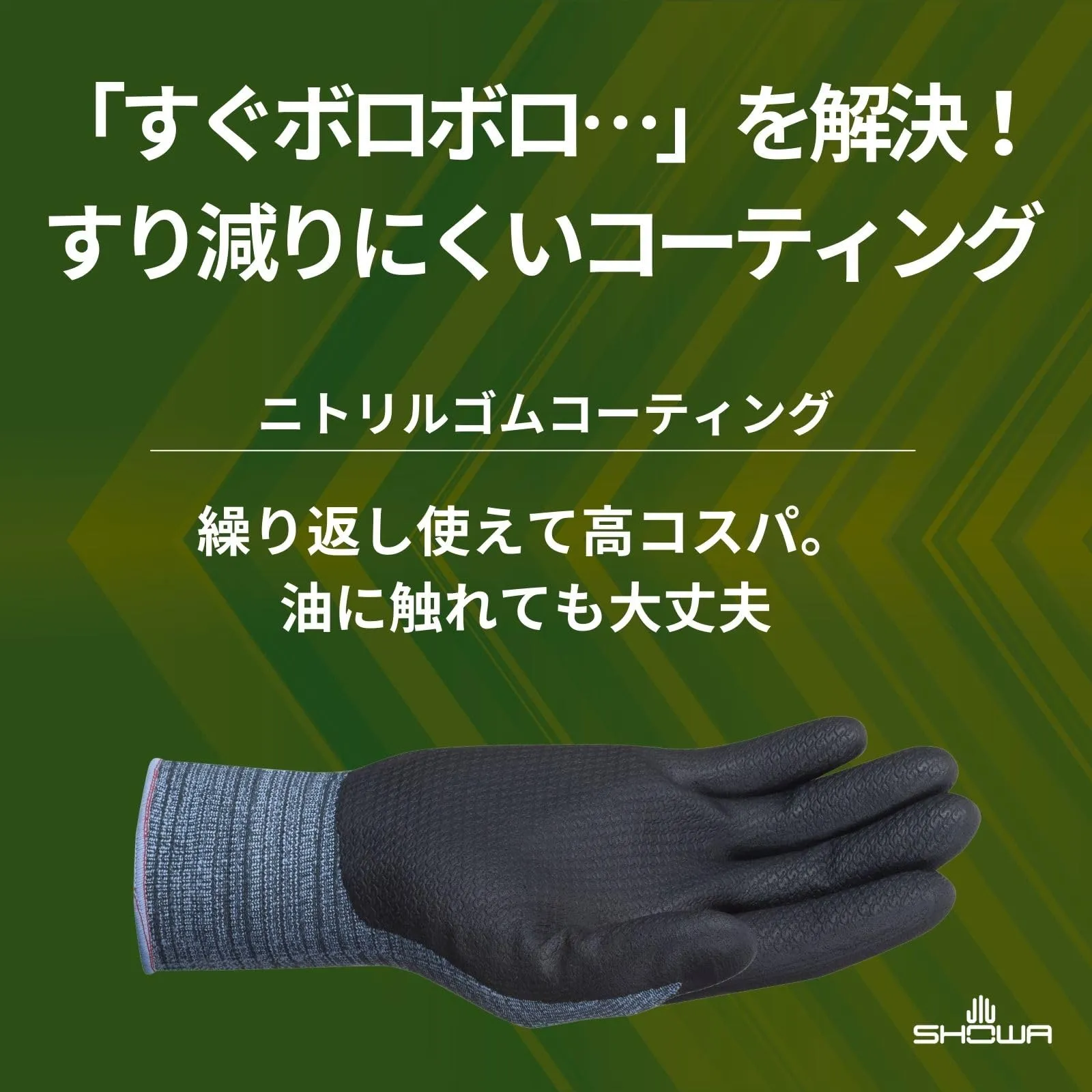 【油や摩擦に強い】手のひらのニトリルゴムコーティングは耐油性と耐摩耗性に優れています。