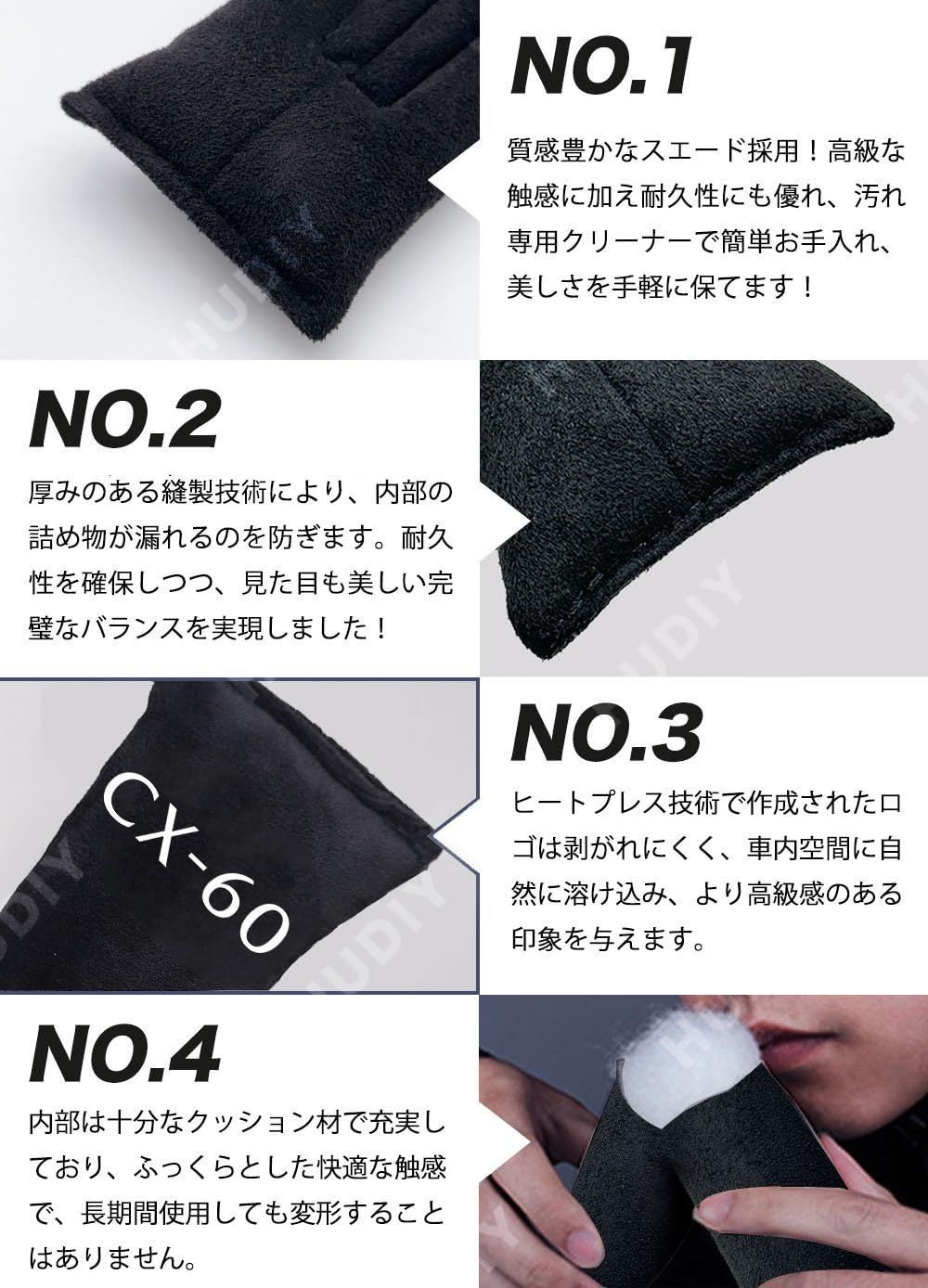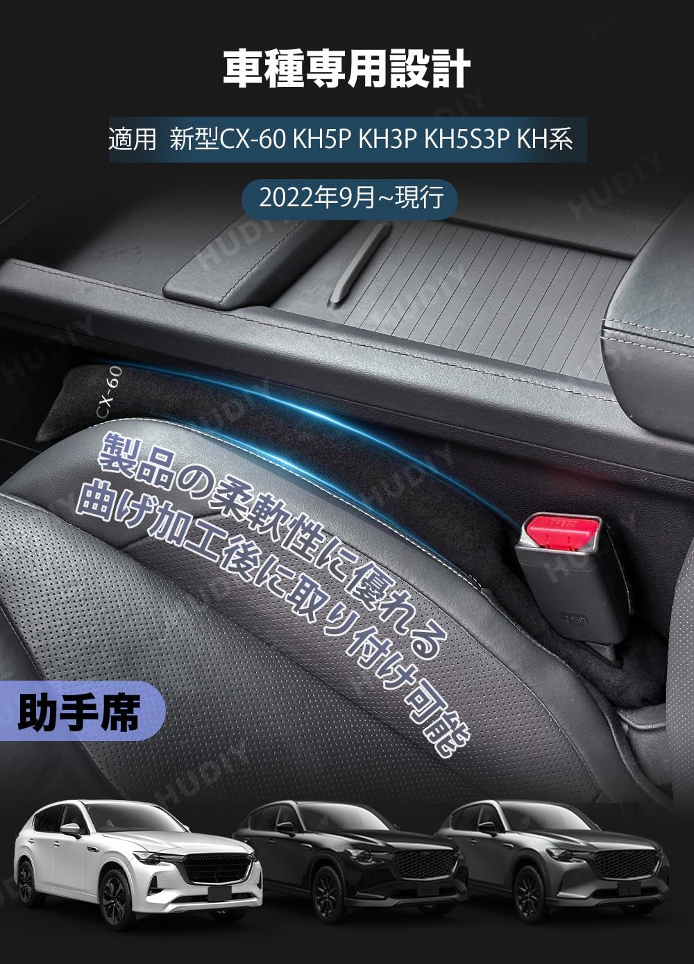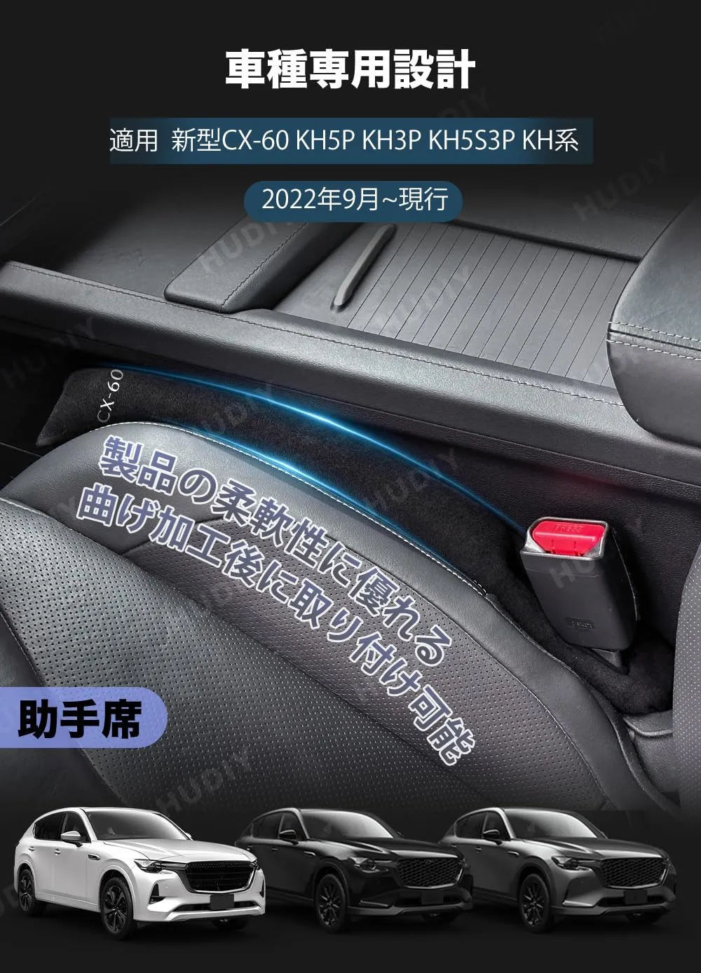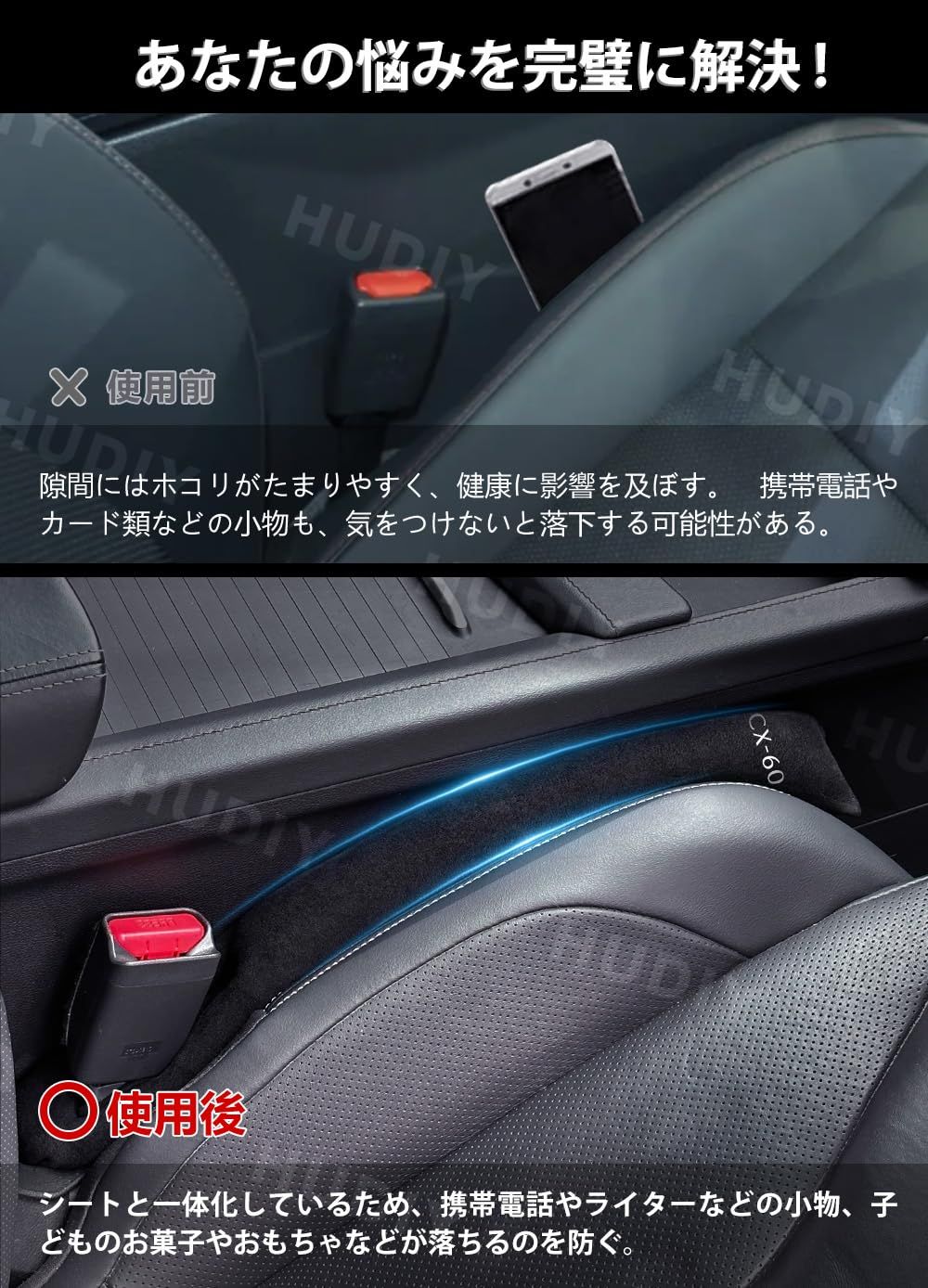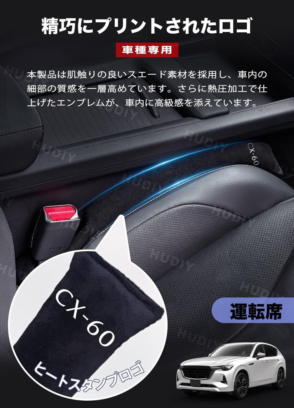 新着商品 HUDIY(フーディ)車用 シートサイド隙間埋め CX-60 KH5P KH3P KH5S3P KH3R3P 車 隙間クッション スエード素材 一体成形 運転席 助手席 ゴミ小物類 落下防止 プリントロゴ入り小物入れ 2本セット