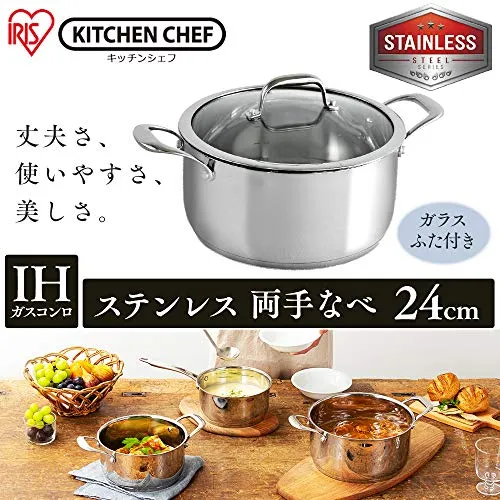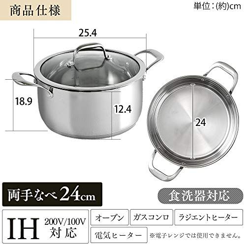 アイリスオーヤマ 両手鍋 24cm ガス火/IH対応 食器洗浄対応 お手入れ簡単 ステンレス/シルバー SP-P24/