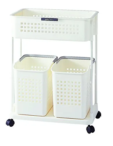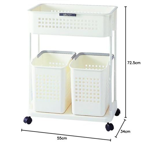 アスベル 脱衣籠 キャスター付 ランドリーW 簡単移動 2段 白 仕分可能 A7401/