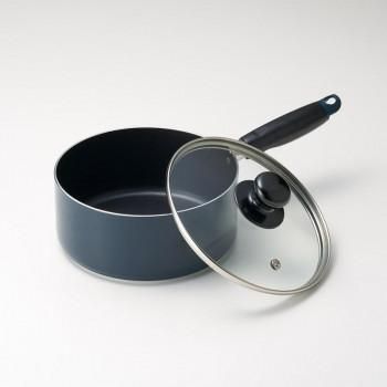 アルミ製クッキングウェアシリーズ「スティージー」。本体はアルミニウム合金でできているので軽くて扱いやすいです。底面にステンレスの鋼板が張り付いているのでIHにも対応しています。また、内面はフッ素樹脂加工が施されているので食材がくっ付きにくく、お手入れも簡単です。ガラス蓋付なので調理中に中身の確認もできます。