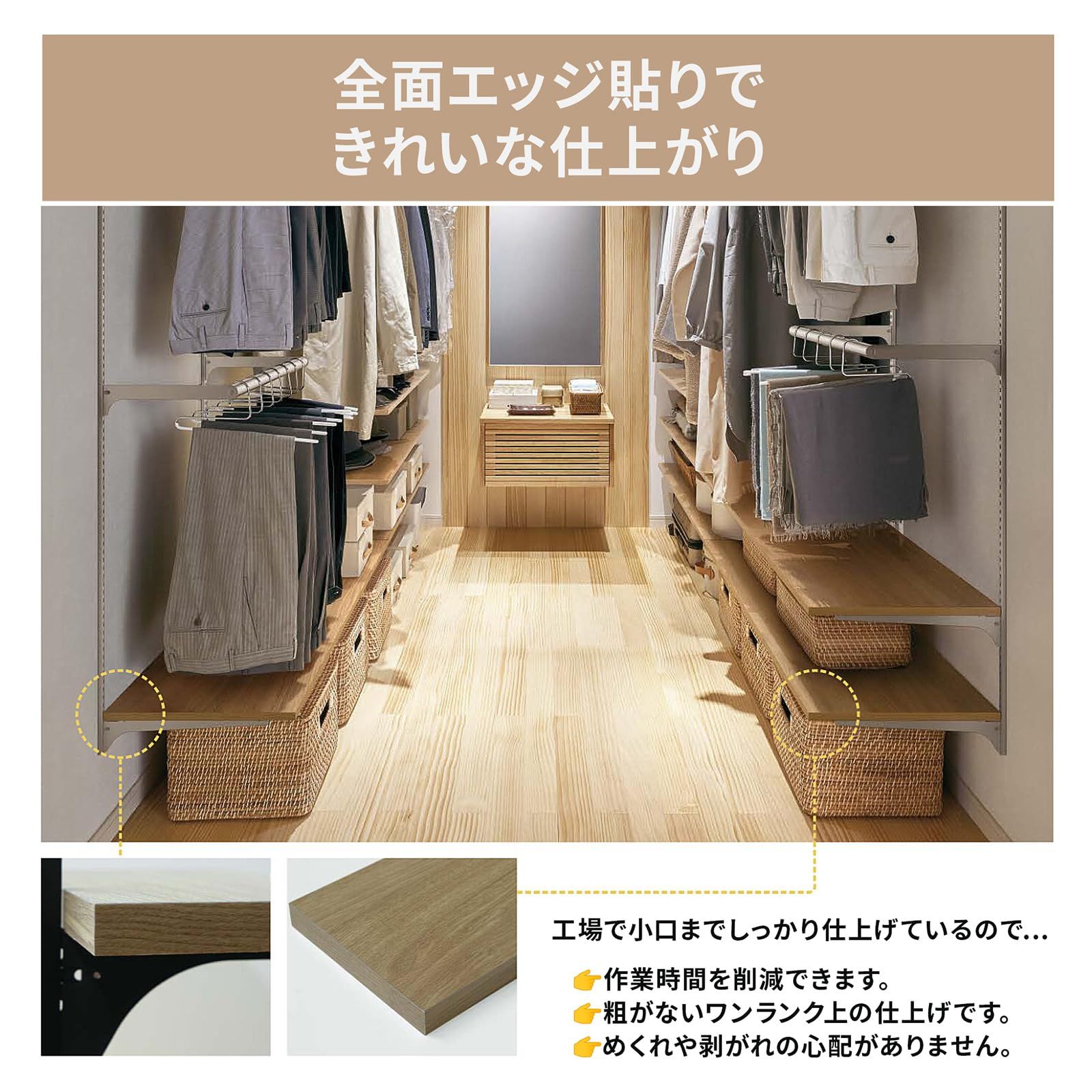 【現場で困ったこと、ありませんか?】 ・木口を貼るのに時間がかかってしまう。 ・ボンドがはみ出たりなd,職人ごとで仕上がりに差がある。 ・木口を貼り付ける際に、角がめくれたり、剥がれてしまうことがある。 仕上げてる棚板なら、 ・工場で木口と木端を貼っているので、作業時間を削減できます。 ・木口や木端の貼り付けは、工場で均一に仕上げています。 ・工場で強固に仕上げているので、角のめくれや剥がれの心配はありません。 このようなお悩みを 「仕上げてる棚板」が解決します。 ・木口を仕上げて施主様の満足度を上げたい。 ・環境のためにゴミを減らしたい。 ・手直しの費用と時間が見えないコスト負担に。。 ・細かい作業は目がかすむ。。 ・工期を短縮したい。 ・「棚はサービス」という認識をなくしたい。 ・大工さんの確保が難しい。 ・ご近所からの騒音クレームを減らしたい。