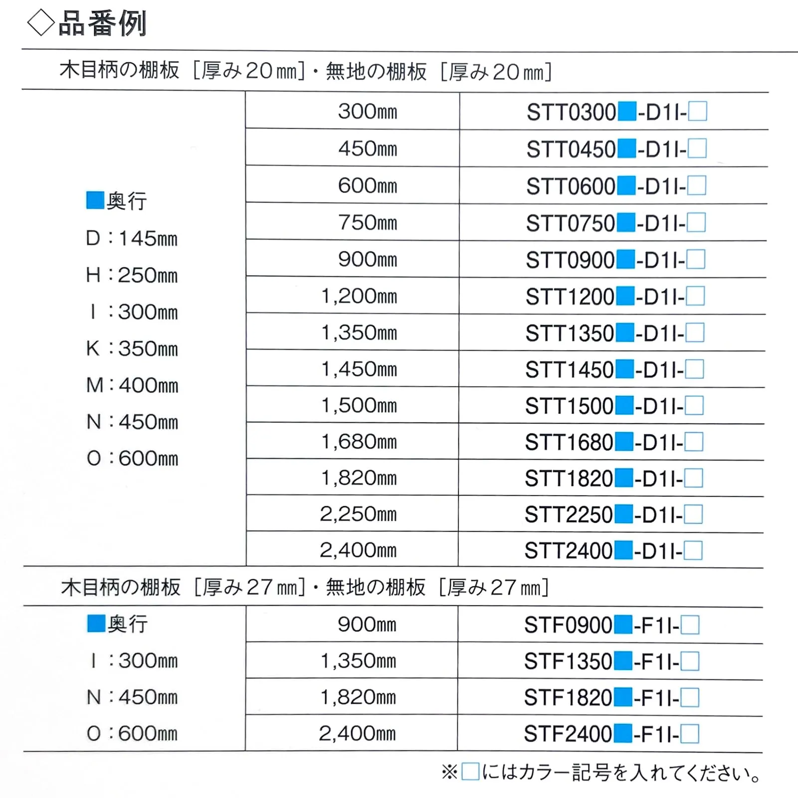 【豊富なサイズ展開】 奥行145mm 文庫本や小物・植物など装飾品 奥行250mm カゴ・タオル置きにちょうどいいサイズ 奥行300mm 絵本や雑誌・小物・靴などにも良いサイズ 奥行350mm バスタオルや洗面用品など 奥行400mm お鍋やフライパンも余裕で収納できる 奥行450mm 大きな箱などもゆとりをもって収納、たたんだ服など 奥行600mm 大きな奥行きのある棚、パネル用に縦使いの用途も