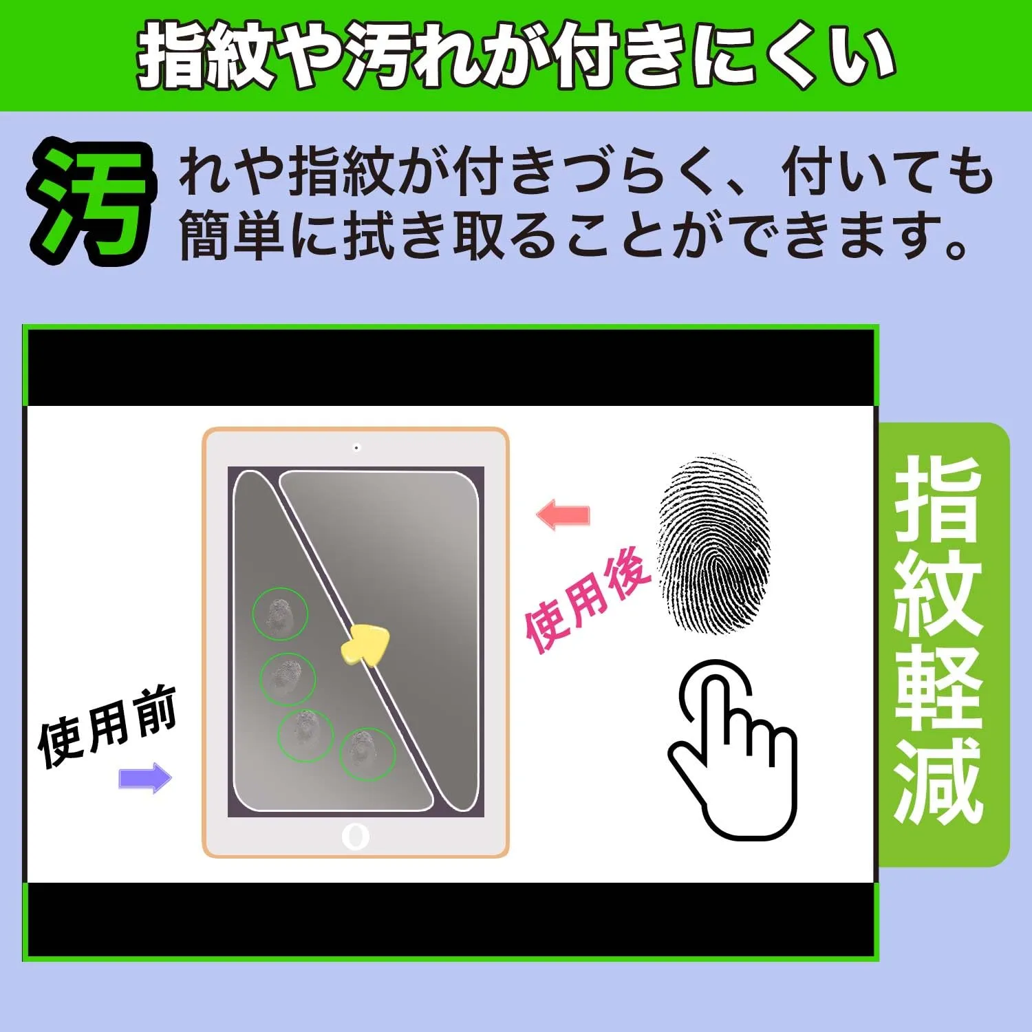 【3】抗菌加工により、フィルム表面での雑菌の繁殖を抑え、清潔な画面を保ちます。