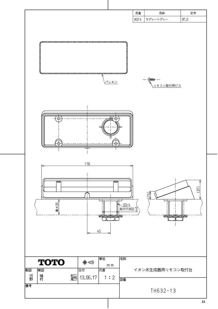 新品 TOTO イオン水生成器用リモコン取付台 TH632-13#G14