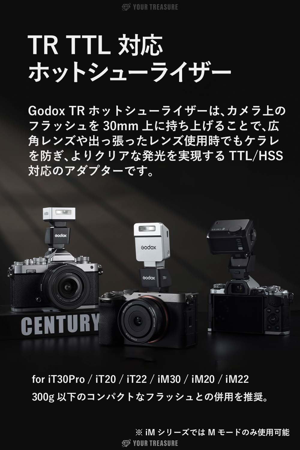 【対応ストロボ】iT30Pro, iT20, iT22 などGodox ミニストロボに対応いたします。