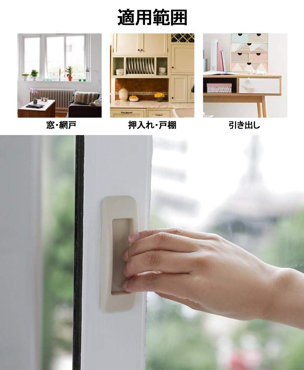 4.適用範囲:取っ手のない窓・網戸・引き出し・押入れ・ドア・食器棚などに貼るだけでらくらく開閉。