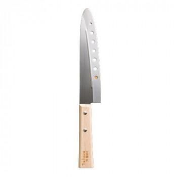 ナチュラルイメージをモチーフとしてデザインした包丁。風合い良く、かつ素朴なデザインで仕上げた一品です。リブ(凸起)と穴明のため切った食材が刃に付きにくく調理に便利な包丁です。