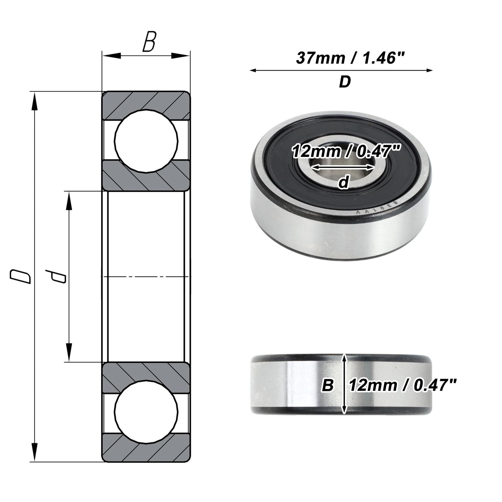 新着商品 ACROPIX 6301VV ディープグルーブボールベアリング P6 12x37x12mm 潤滑ベアリング ダブルラバーシール ブラック シルバートーン スクーター スケートボード ホイール
