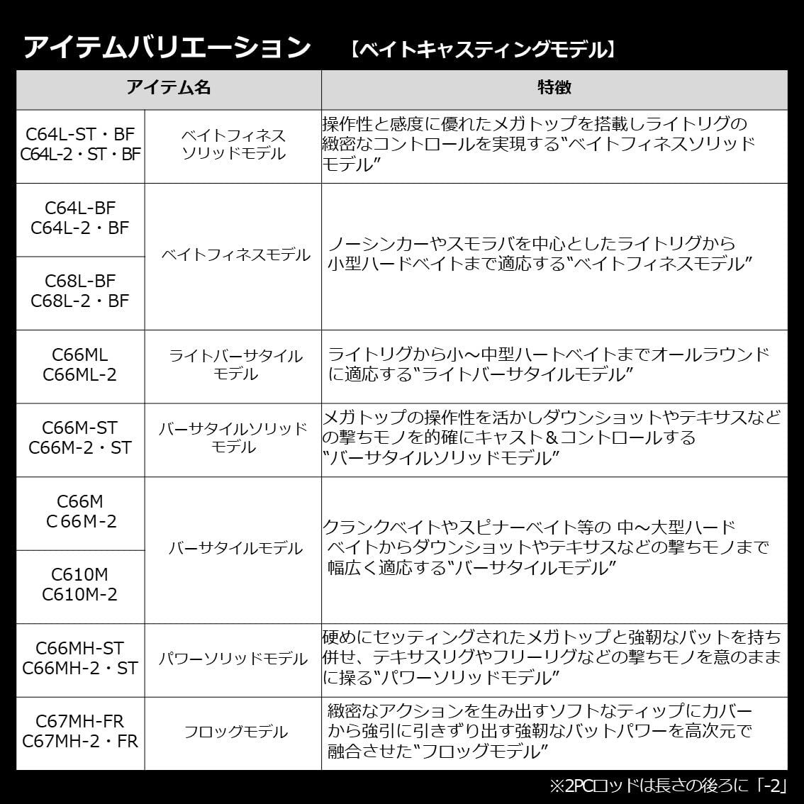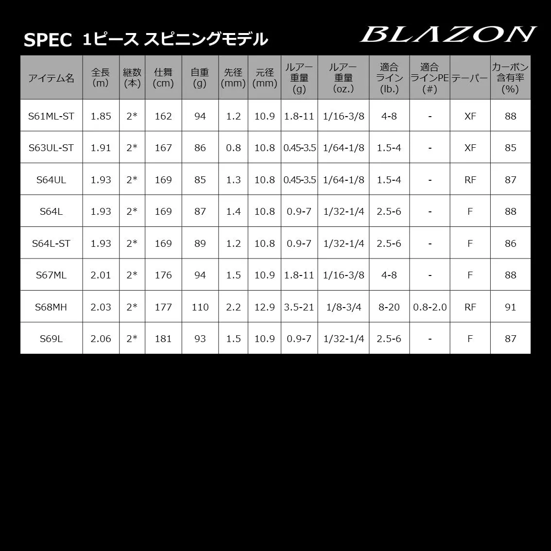 全長(m):2.11 / 継数(本):2 / 仕舞(cm):109