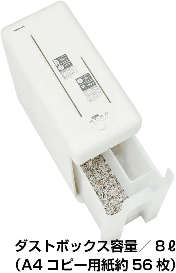 ●ダストボックス容量:約8リットル(A4コピー用紙 約110枚/3枚細断時) ※過負荷検知後のオートリバース(自動逆転)機能付き。