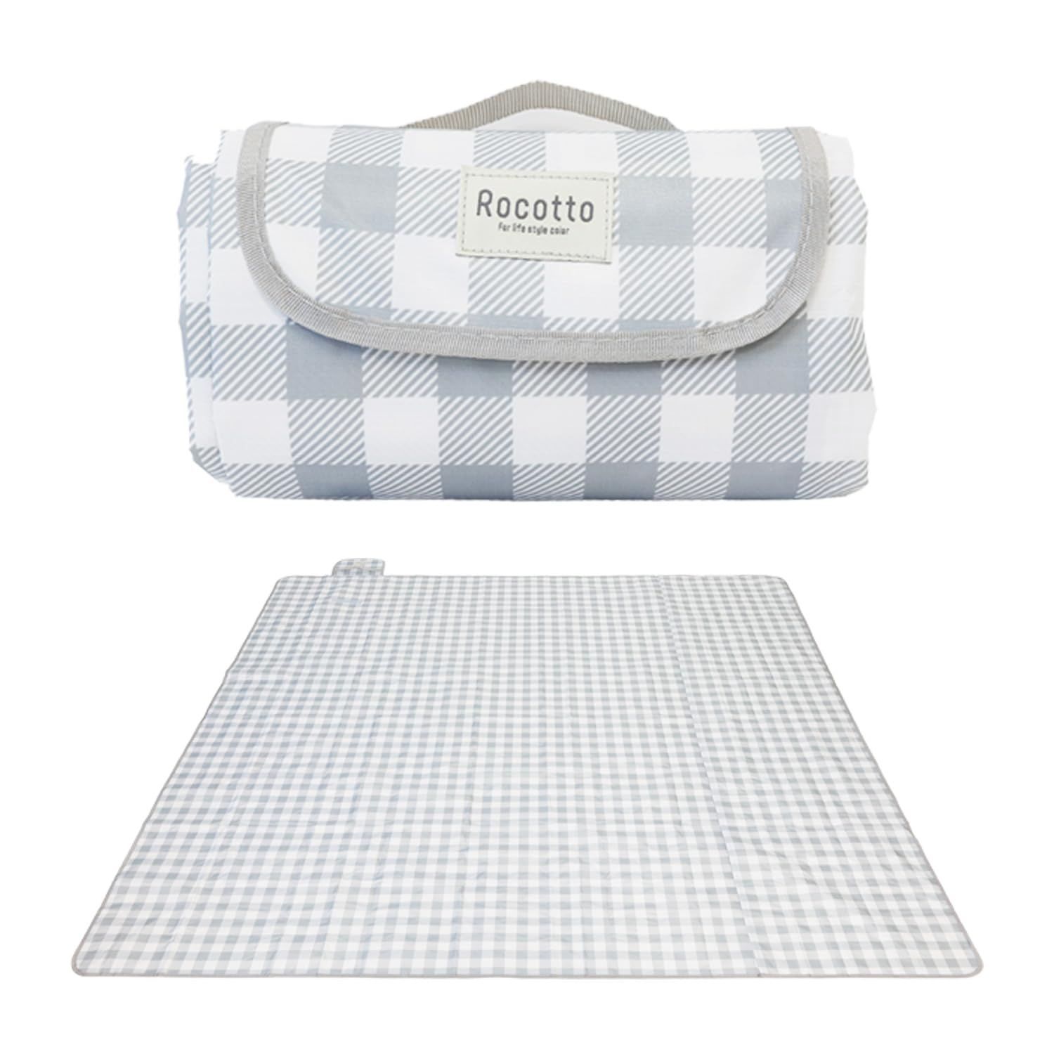 [Rocotto] レジャーシート 大判 厚手 200x200 ピクニックシート 防水 軽量 韓国風 くすみカラー インスタ映え アウトドア 折りたたみ キャンプ 洗える (チェックグレー 200×200cm)