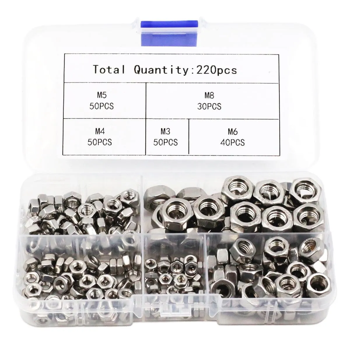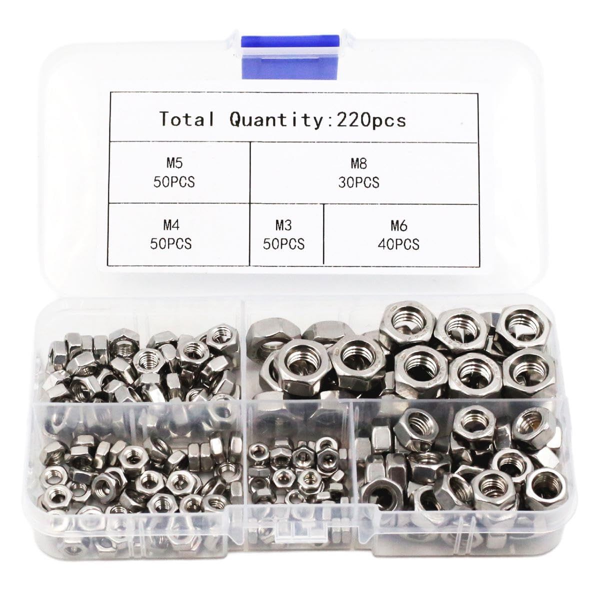 新品 winova 六角ナットセット 220個 M3/M4/M5/M6/M8 SUS304ステンレス製 耐食・防錆 小分け収納ケース付き 多用途対応