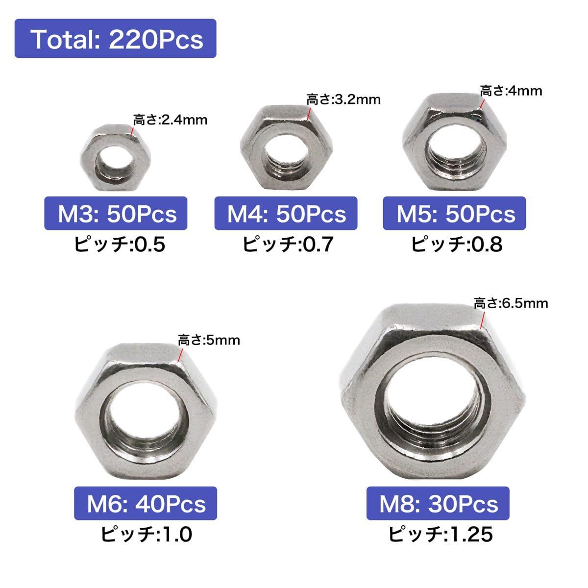 [豊富なセット内容] M3?M8まで計220個を収録(M3×50、M4×50、M5×50、M6×40、M8×30)日常からDIYまで幅広く対応