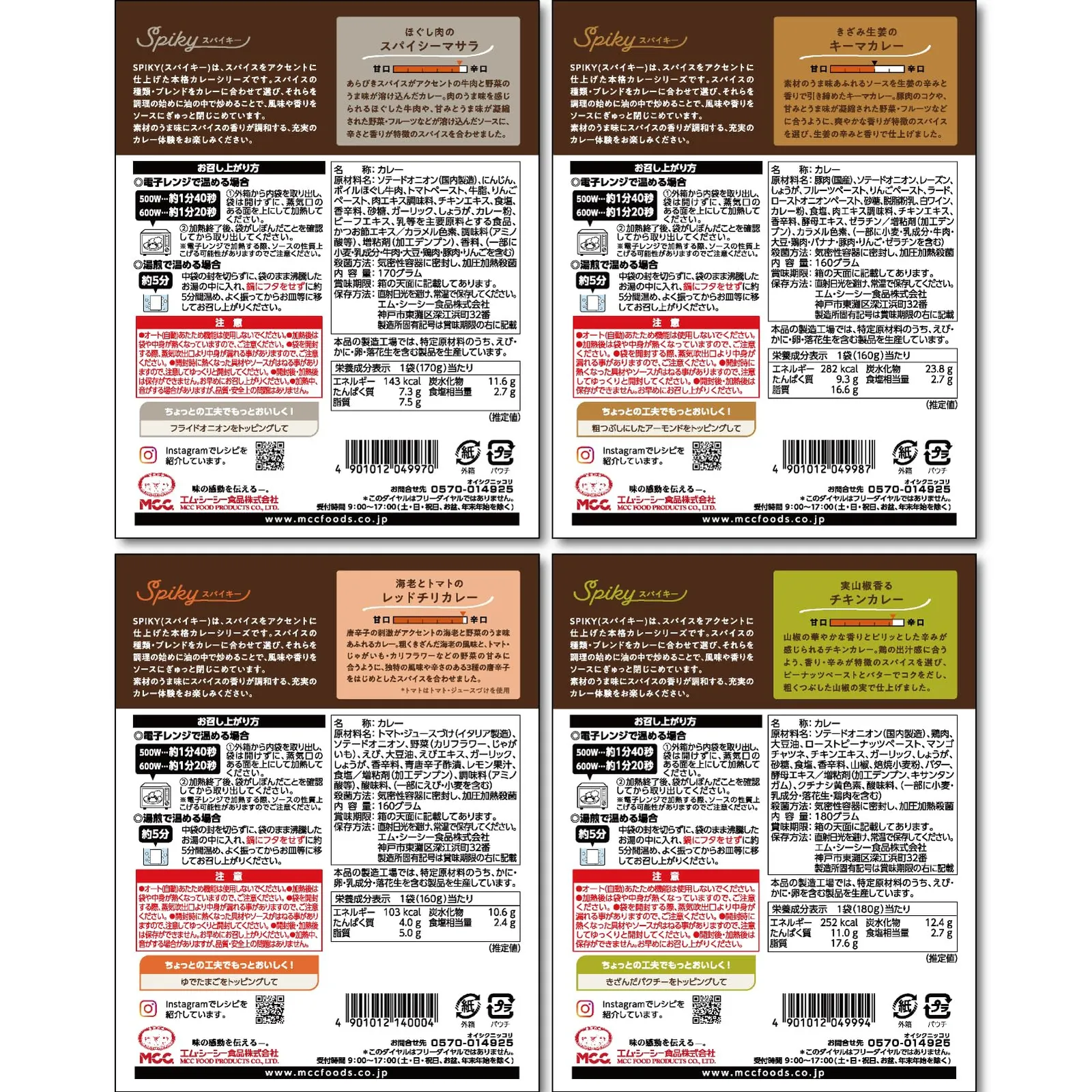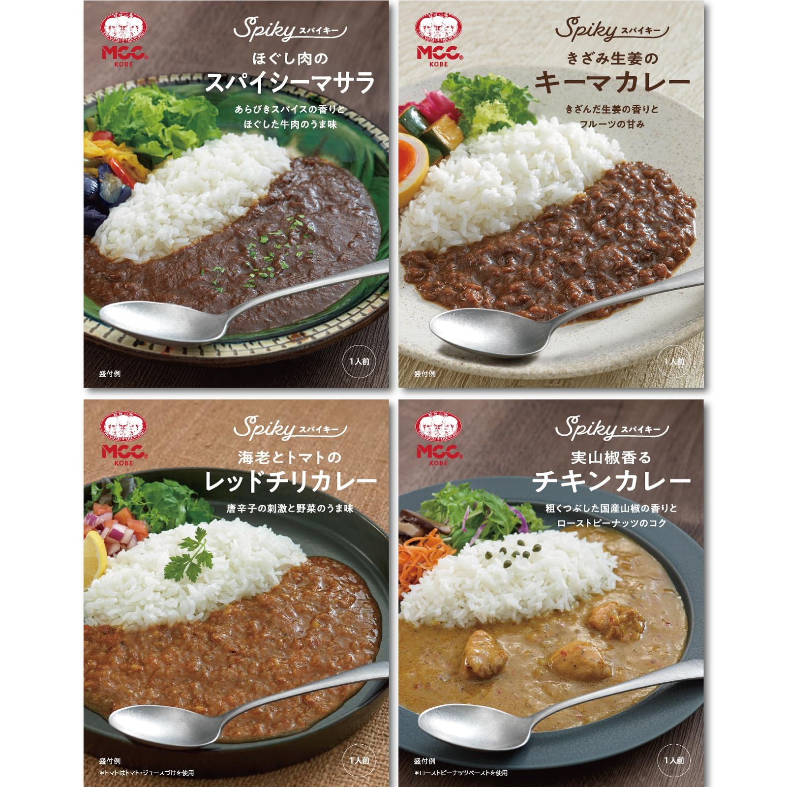 新品 MCC SPIKY(スパイキー) スパイスカレー 4種セット (4種類x各1個 計4個)〈レンジ調理対応/辛口〉