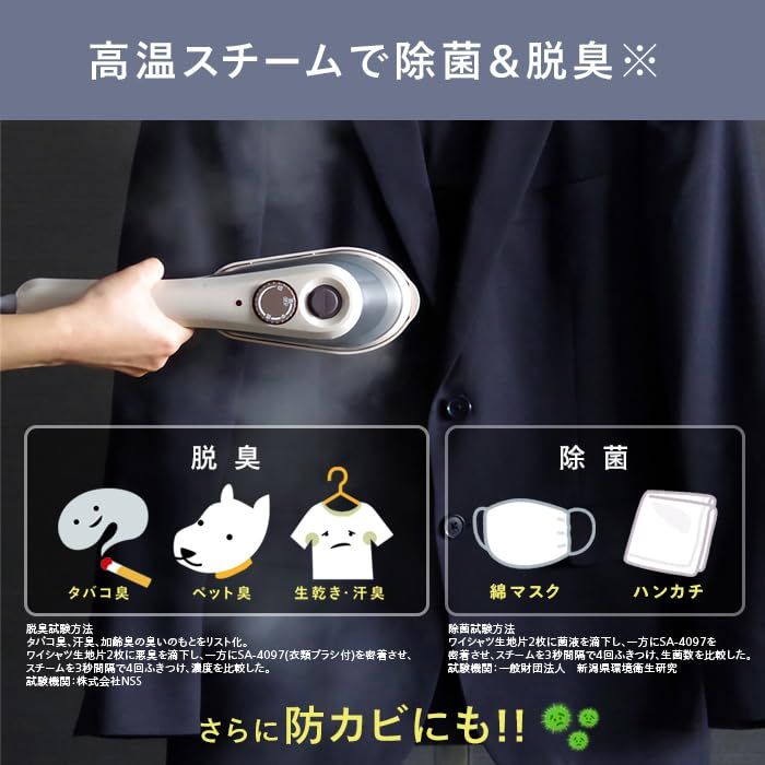ツインバード 衣類スチーマー ハンディアイロン&スチーマー 脱臭 除菌 毛ブラシ 衣類ブラシ付 アイボリー SA-4097VO/