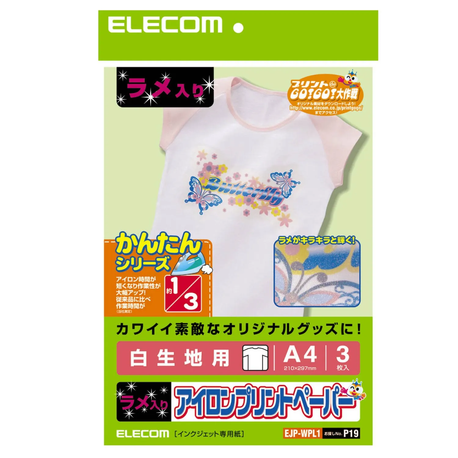 新品 エレコム アイロンプリントペーパー A4 3枚 白/濃い生地用 ラメ入り EJP-WPL1