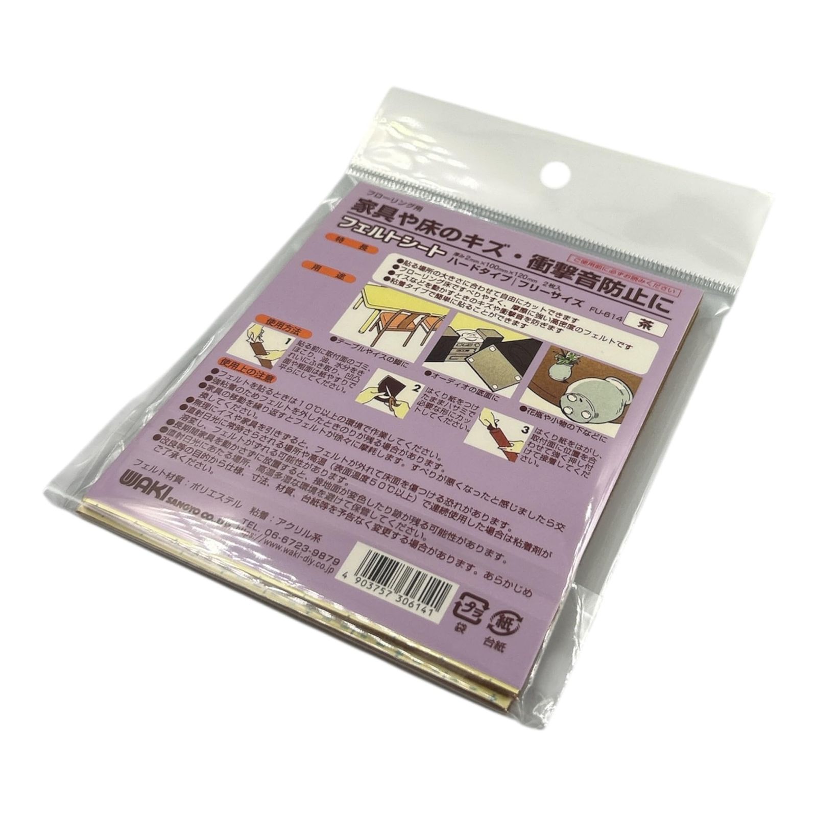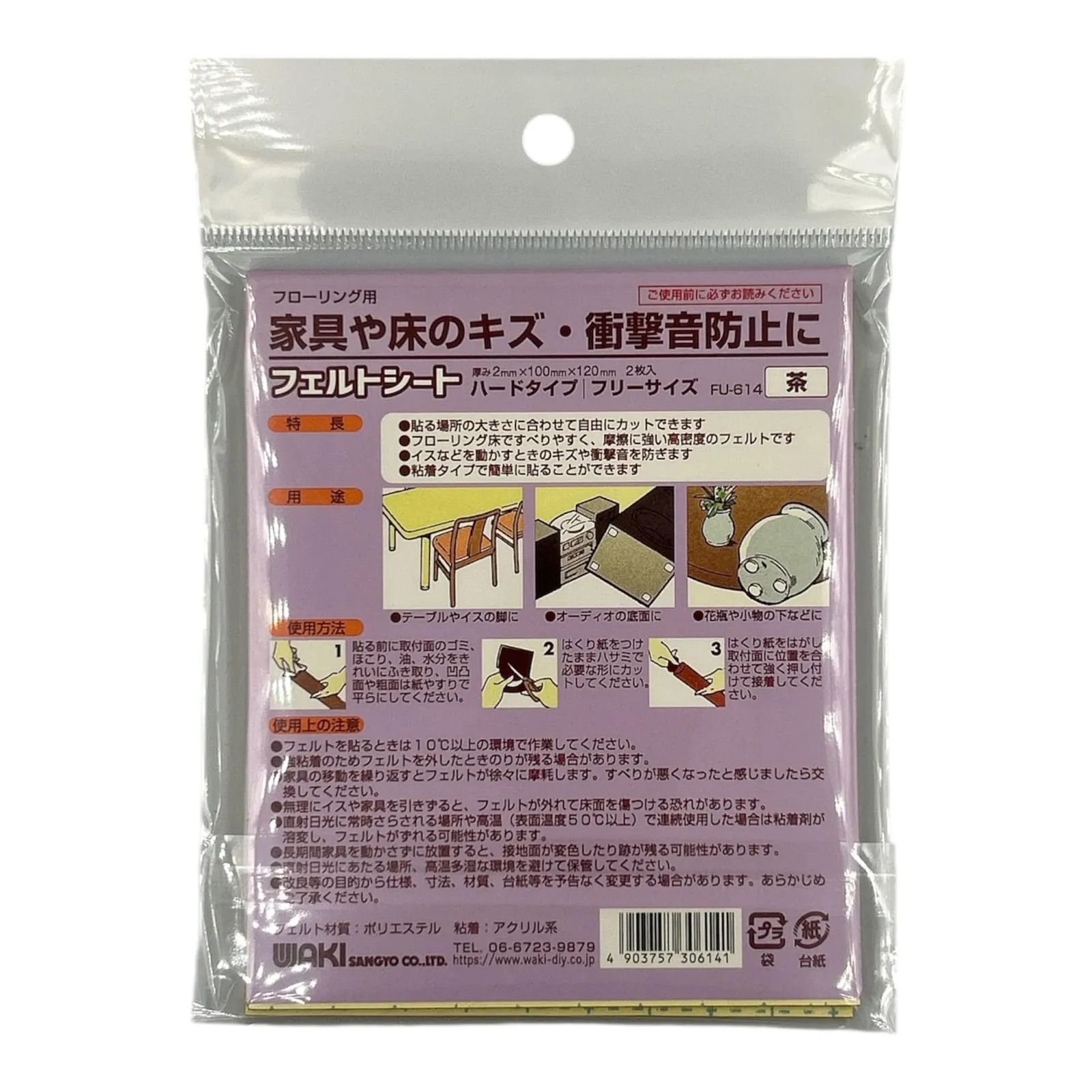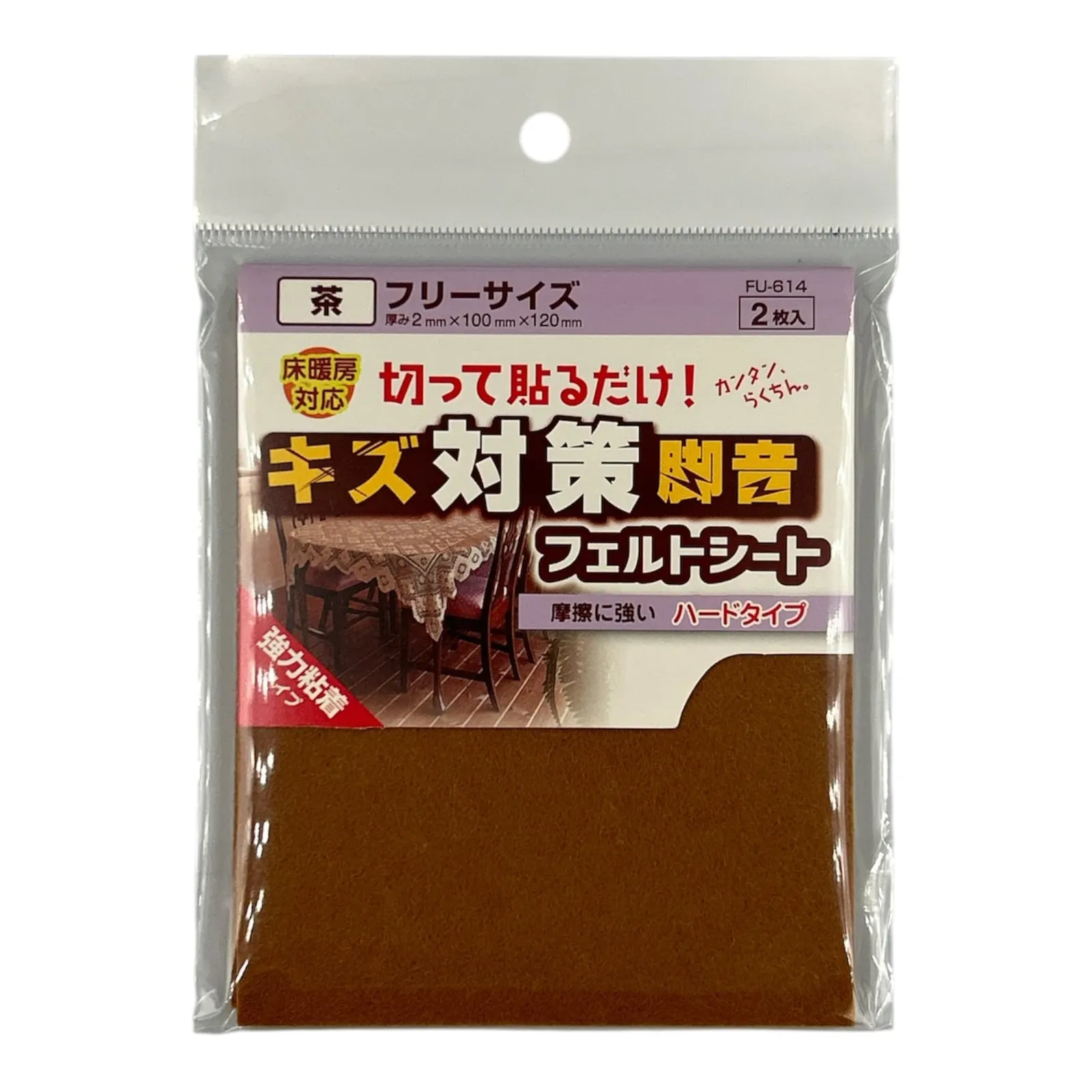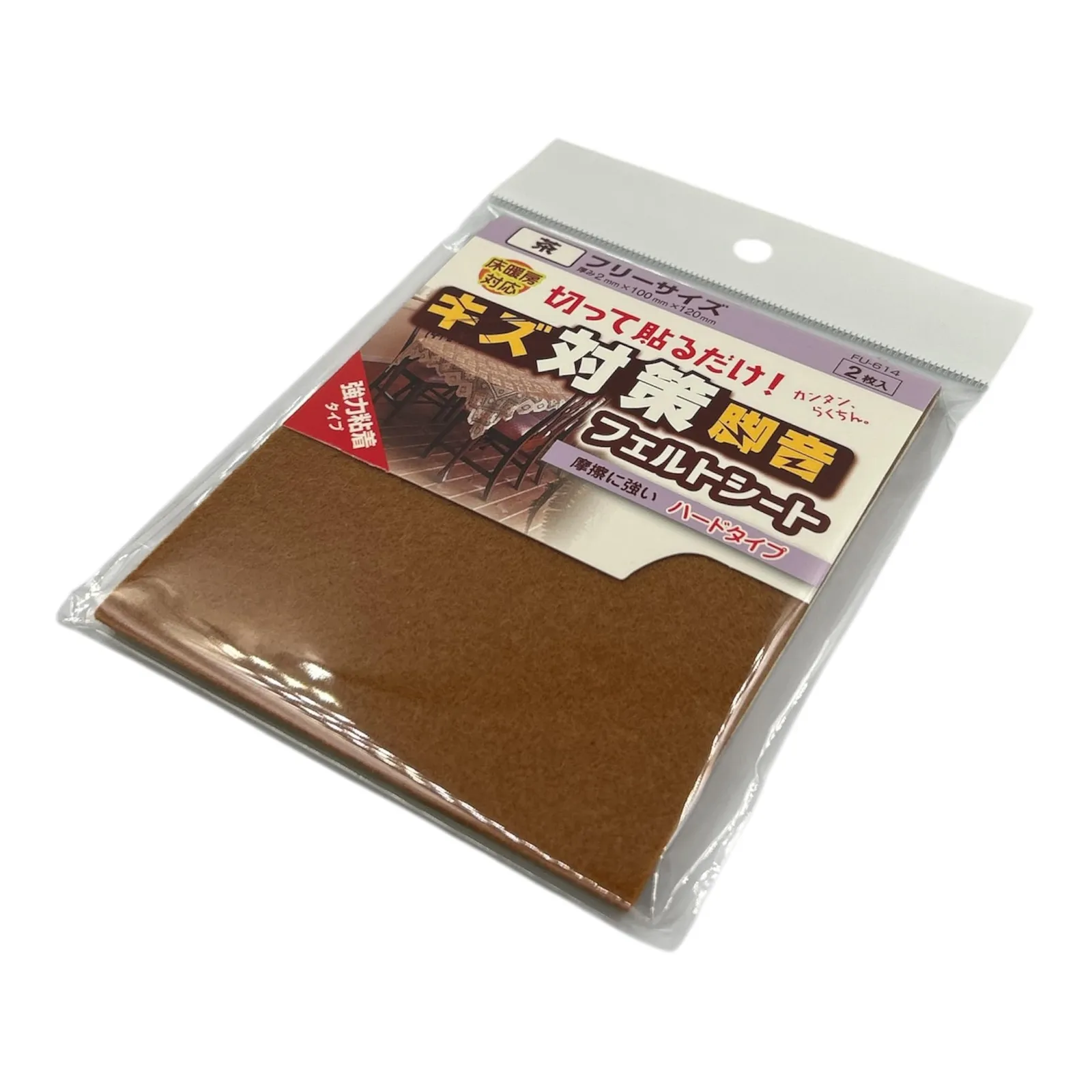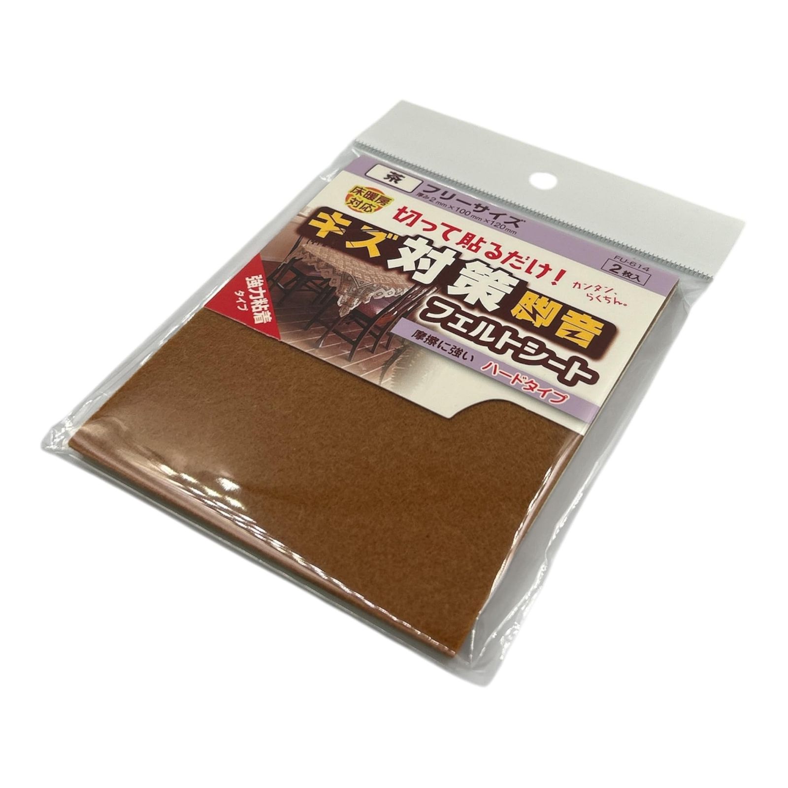 新品 和気産業(Waki Sangyo) フエルトシート 家具 イス 床 傷防止 茶 フリーサイズ 厚み2×幅100×長さ120mm テーブル 椅子 家具 FU-614 2枚入