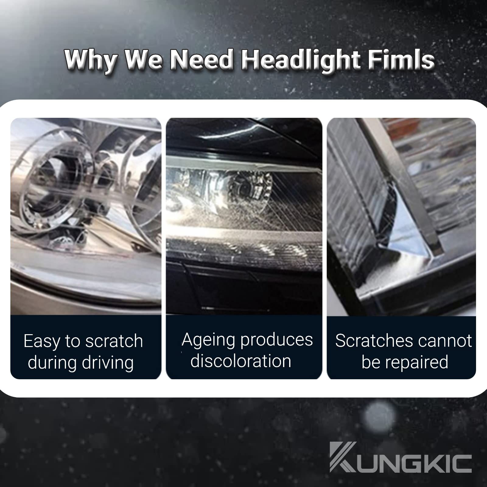 [ 特徴 ]: ヘッドライト保護フィルムは、取り付けるとほぼ見えません。 車のヘッドライトを新品のように保ちます。大切な投資を保護します。