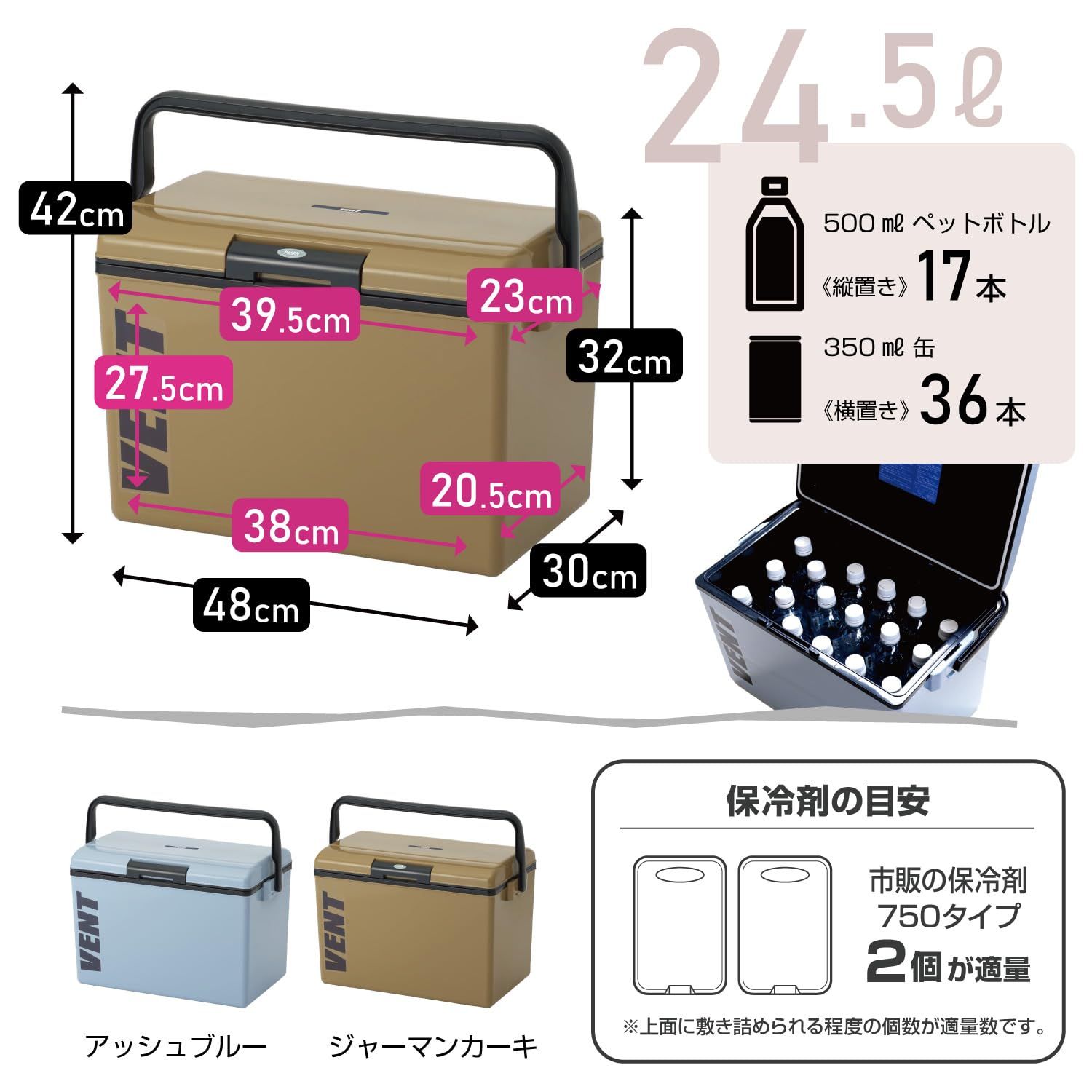 500mlPET(縦置き)17本 350ml缶(縦置き)36本最大容量(約) 24.5L