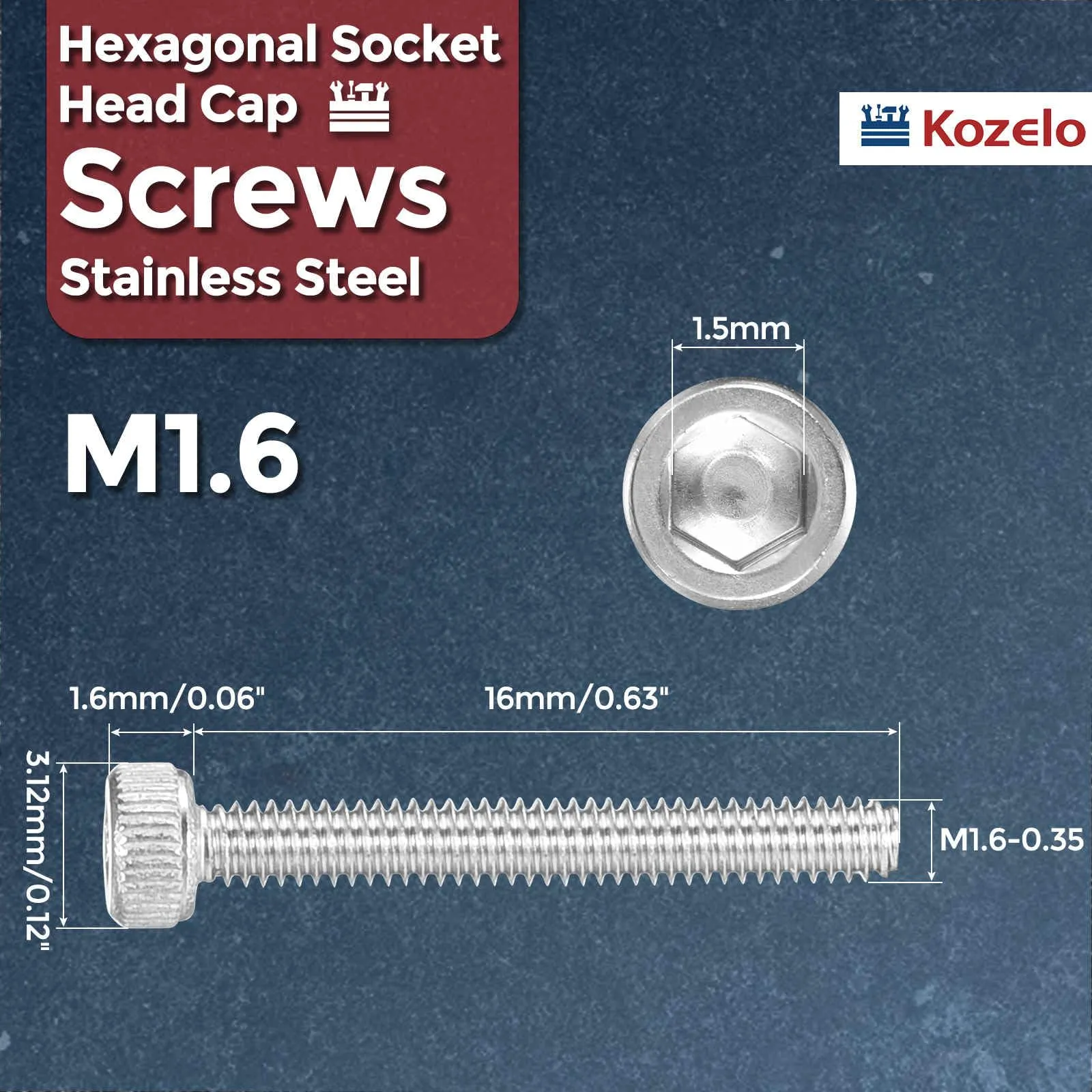1- パッケージ内容 - 六角ヘッドソケットヘッドキャップねじ50個、ねじサイズ:M1.6-0.35;ねじ長さ:16mm/0.63インチ;ヘッド直径:3.14mm/0.12インチ;ヘッド厚さ:1.6mm/0.06インチ;六角幅:1.5mm;幅広い産業および商業用途に対応する多目的かつ信頼性のある選択肢。