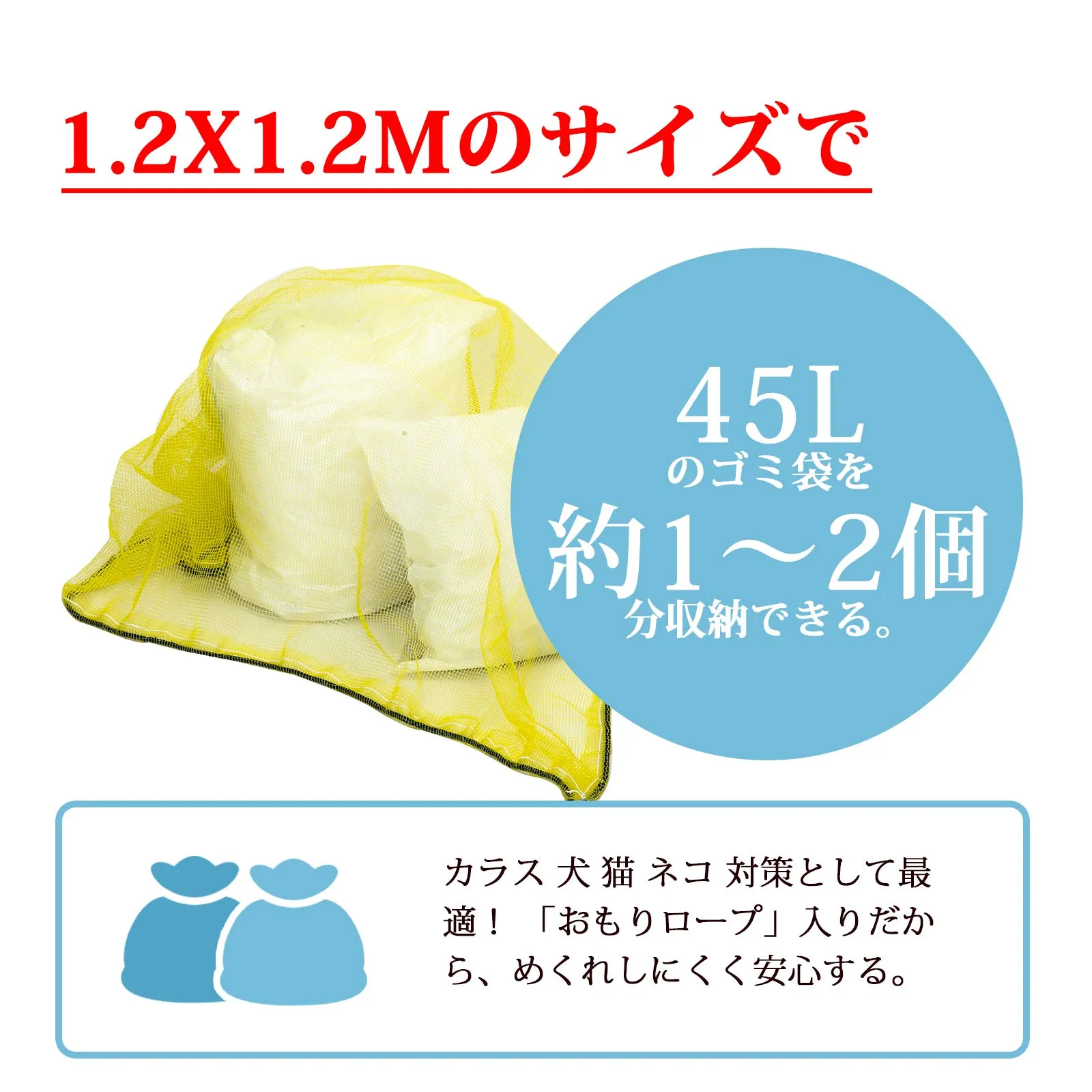 【サイズ】約1.2x1.2m (目安: 45Lのゴミ袋約2個分の収納力/ゴミ袋の大きさやごみの量によって収納目安は変わる可能性がございます)
