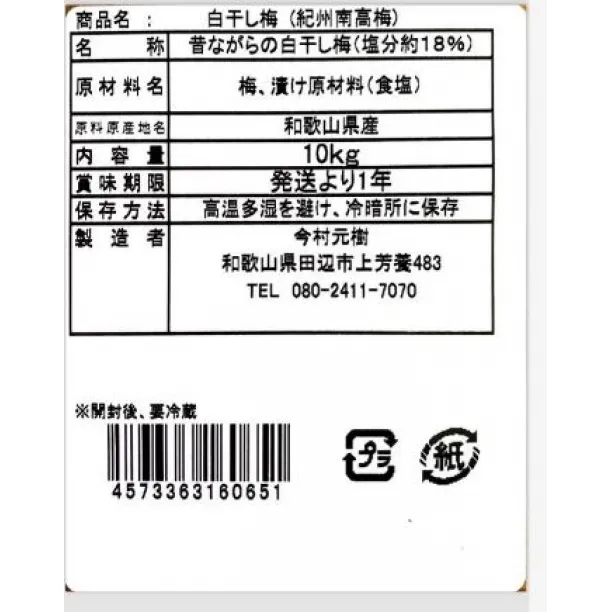 【発送は1週間以内に順次発送予定となります】※※※ 発送日の確認についてのメッセージの返信や、 購入後のご挨拶を割愛させて頂いており、 返信はしておりませんのでご了承くださいませ。 ※重量※ 合計1000g お届け 原料原産地 和歌山県産 原材料名 梅干、漬け原材料[食塩] 賞味期限 発送より一年 保存方法 直射日光、高温多湿を避けて保存 ※サイズ※ ミックスとなります。 ○注意 ・商品写真はできる限り実物の色に近づけるよう徹底しておりますが、 あくまでも自然のものですので、実際の商品と若干色味や傷が異なる場合があります。また大きさの違いもございますので、個数には若干前後致します。