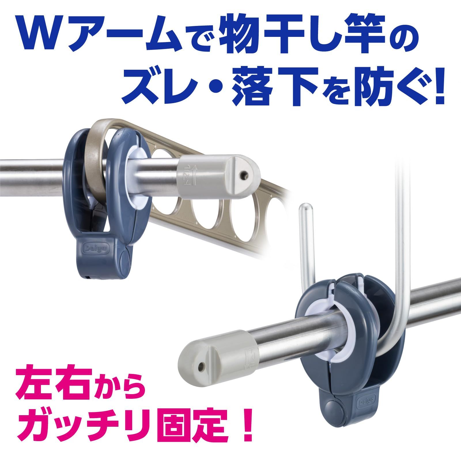 特徴2:物干竿と竿受けを一度で挟むWアーム形状