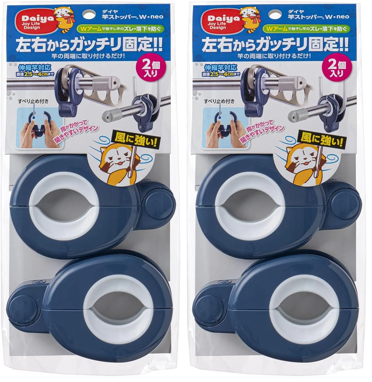 新品 ダイヤ (Daiya) 洗濯 物干し 強風対策 竿ストッパーW・neo 物干し竿の横ズレ・縦ズレ・落下を防ぐ 丈夫 さびにくい 風 強風 台風 防災 物干し竿 ズレ 落下 横約6.6cm×縦約10cm×厚さ約4.3cm 057457 (× 2)