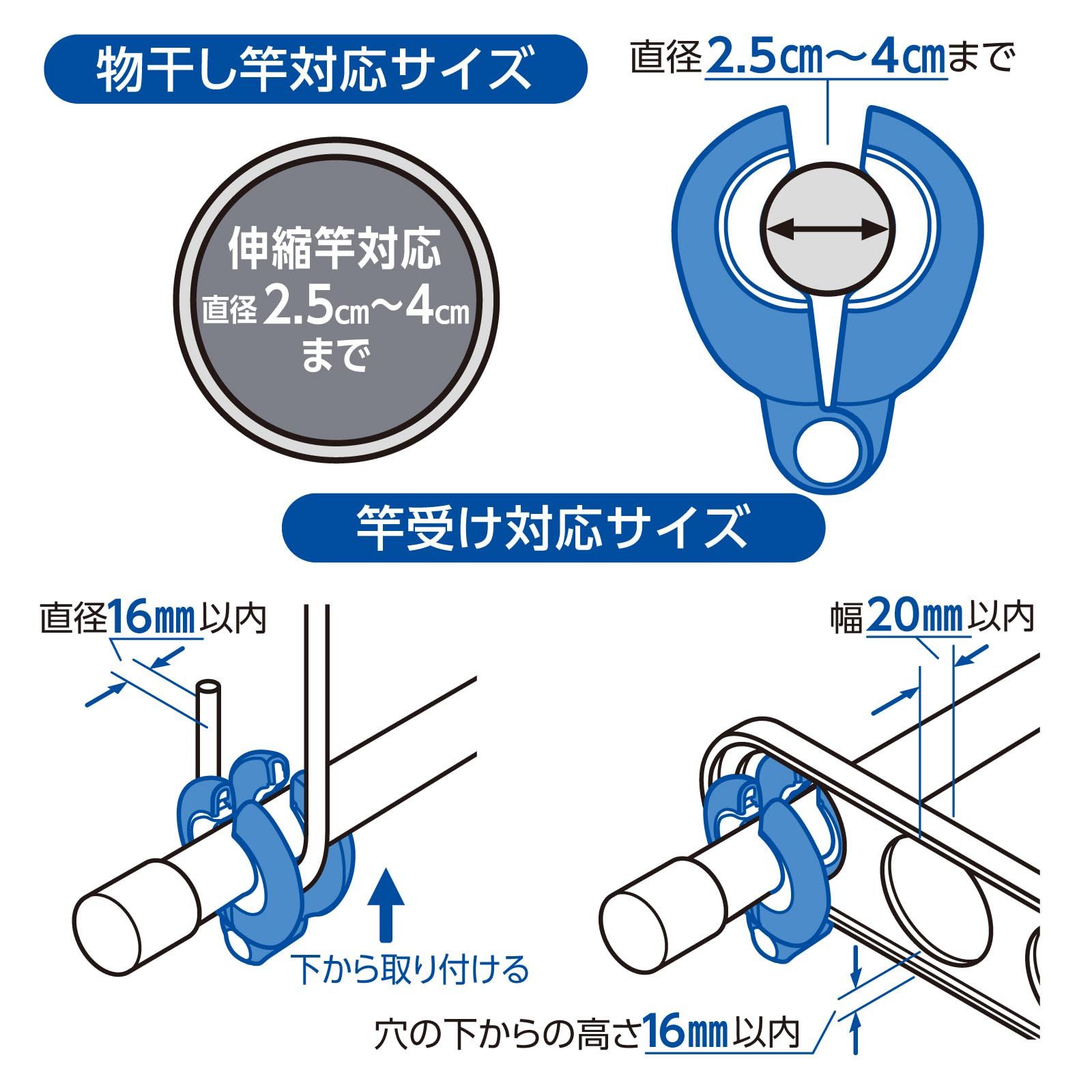 特徴1:物干し竿の上下左右のズレ・落下を防ぐ