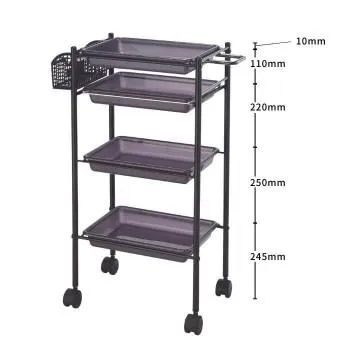ドライヤーホルダー兼用取手、メッシュラック付きのトレー式天板ワゴンです。